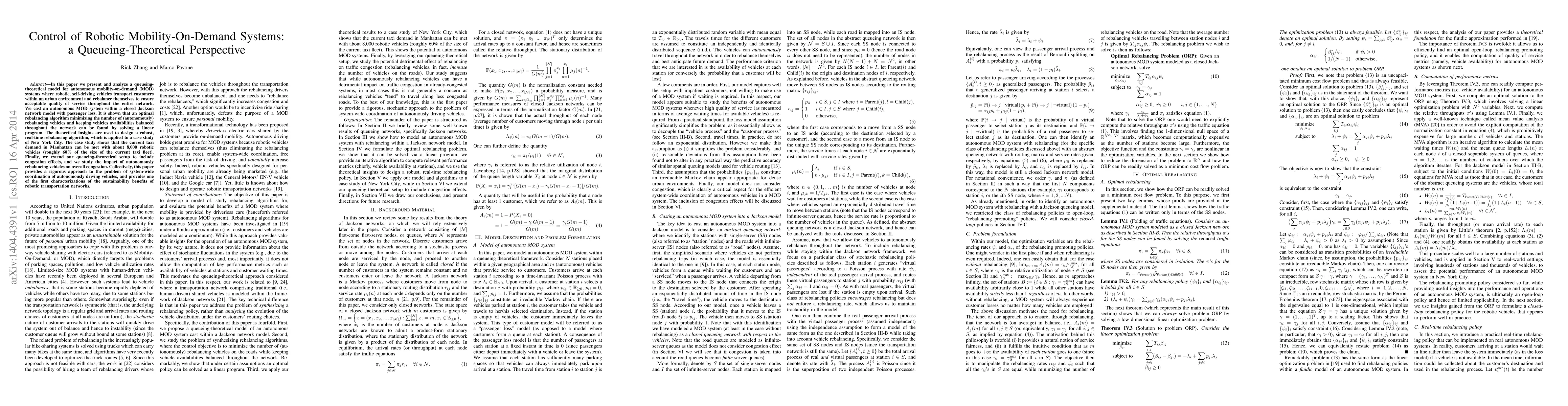 This paper develops a queueing-theoretical model for autonomous mobility-on-demand systems, demonstrating how optimal rebalancing can be achieved via linear programming. The model is applied to New York City, showing that robotic vehicles could meet current taxi demand with 60% of the current fleet size.