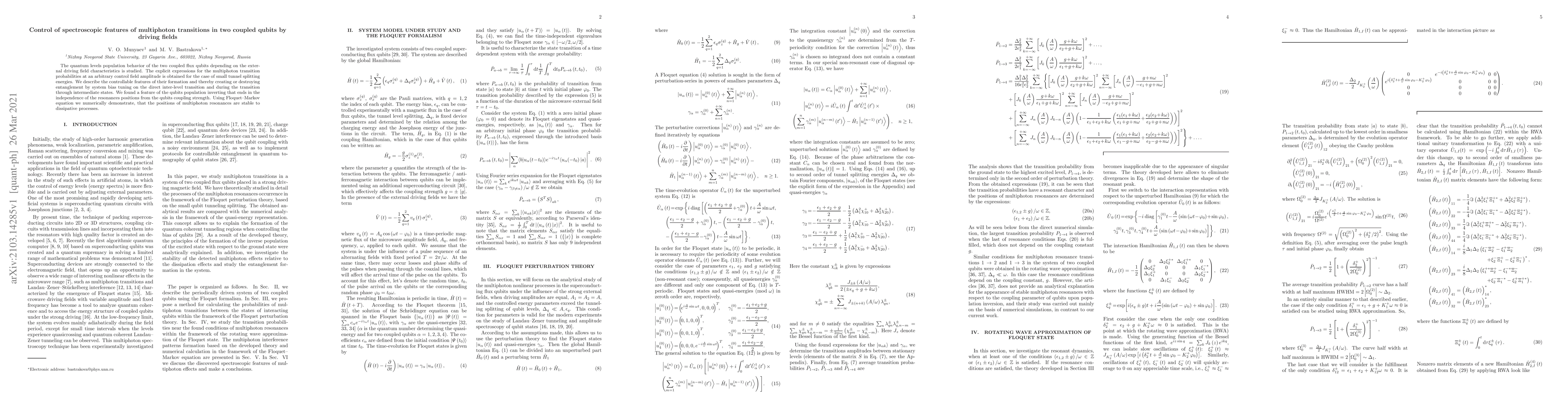 This paper investigates the quantum levels population dynamics of two coupled flux qubits under varying external driving fields, deriving expressions for multiphoton transition probabilities. It demonstrates how tuning the system's bias can control entanglement formation and destruction, revealing a population inversion feature that decouples resonance positions from qubit coupling strength, and confirms the stability of multiphoton resonances against dissipative processes using the Floquet-Markov equation.