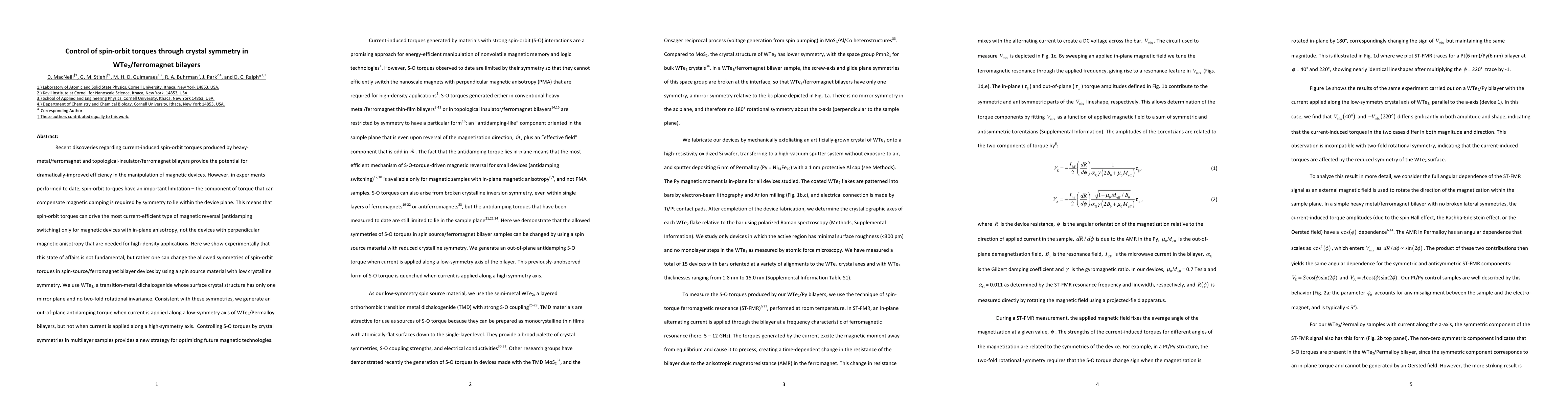 This paper demonstrates that by utilizing WTe2, a material with low crystalline symmetry, it is possible to generate out-of-plane spin-orbit torques in WTe2/Permalloy bilayers, thereby overcoming the symmetry limitation that restricts current-efficient magnetic reversal in devices with perpendicular magnetic anisotropy. This finding opens new pathways for optimizing magnetic devices for high-density applications.