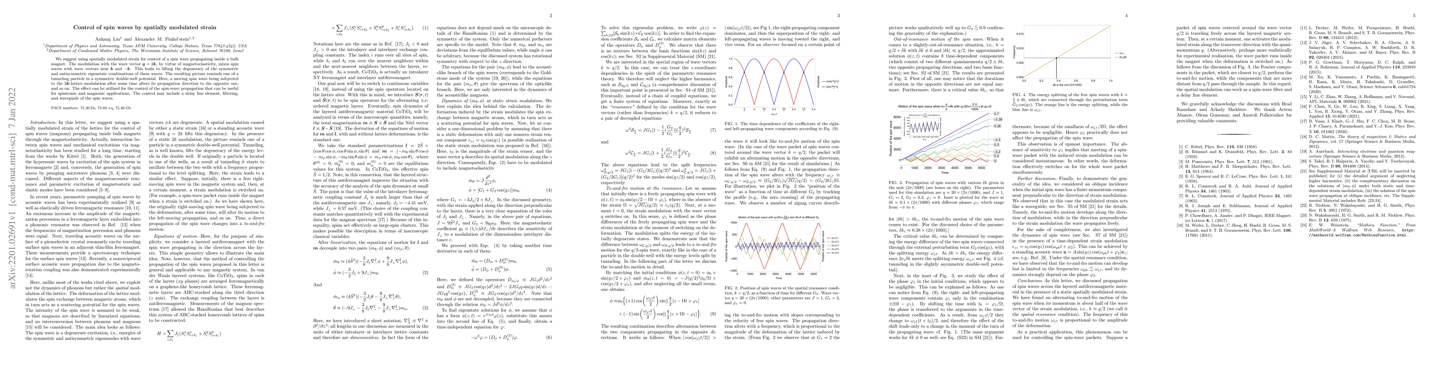 The research proposes using spatially modulated strain to control spin waves in bulk magnets, exploiting magnetoelasticity to mix wave vectors and alter propagation direction. This effect could be beneficial for spintronic and magnonic applications, including control of delay lines, filtering, and waveguides.