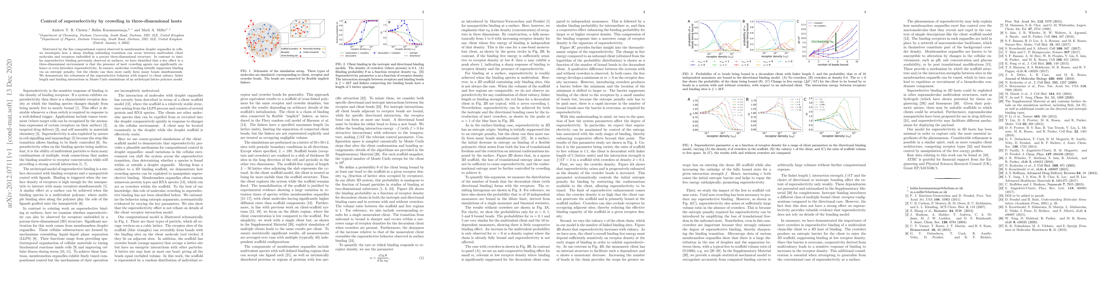 The study identifies that molecular crowding can introduce or enhance superselectivity in a 3D environment, contrasting with previous observations at surfaces, and highlights the importance of crowders in sharpening the binding transition.