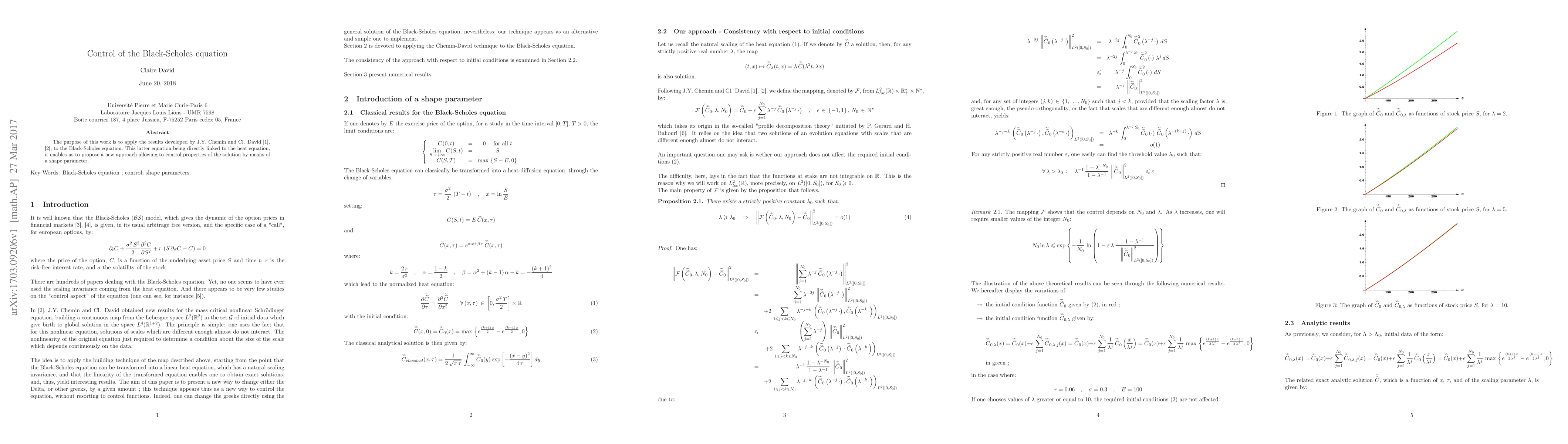 This paper explores the control aspect of the Black-Scholes equation by leveraging its scaling invariance from the heat equation, offering a novel method to adjust options Greeks without traditional control functions. It builds on prior results for the mass critical nonlinear Schrödinger equation, demonstrating that exact solutions of the transformed linear heat equation can achieve desired changes in the Greeks.