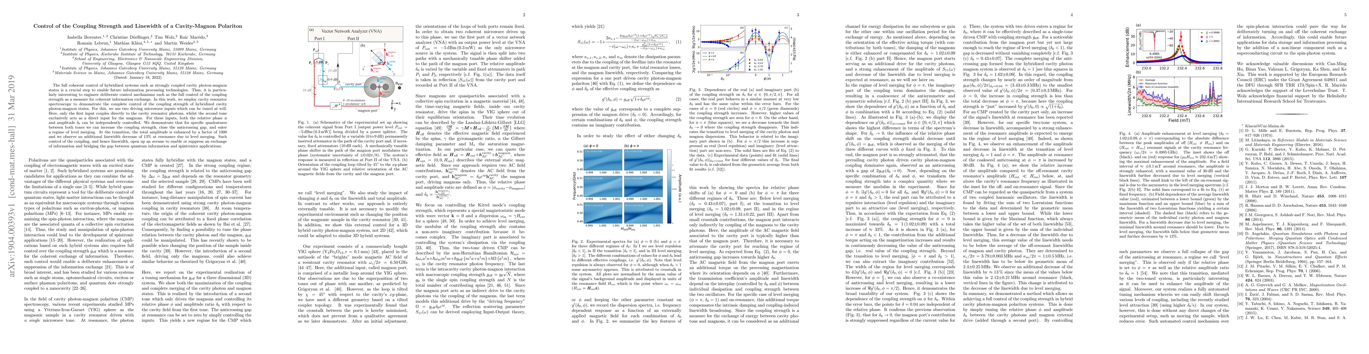The full coherent control of hybridized systems such as strongly coupled cavity photon-magnon states is a crucial step to enable future information processing technologies. Thus, it is particularly interesting to engineer deliberate control mechanisms such as the full control of the coupling strength as a measure for coherent information exchange. In this work, we employ cavity resonator spectroscopy to demonstrate the complete control of the coupling strength of hybridized cavity photon-magnon states. For this, we use two driving microwave inputs which can be tuned at will. Here, only the first input couples directly to the cavity resonator photons, whilst the second tone exclusively acts as a direct input for the magnons. For these inputs, both the relative phase $\phi$ and amplitude $\delta_0$ can be independently controlled. We demonstrate that for specific quadratures between both tones, we can increase the coupling strength, close the anticrossing gap, and enter a regime of level merging. At the transition, the total amplitude is enhanced by a factor of 1000 and we observe an additional linewidth decrease of $13\%$ at resonance due to level merging. Such control of the coupling, and hence linewidth, open up an avenue to enable or suppress an exchange of information and bridging the gap between quantum information and spintronics applications.