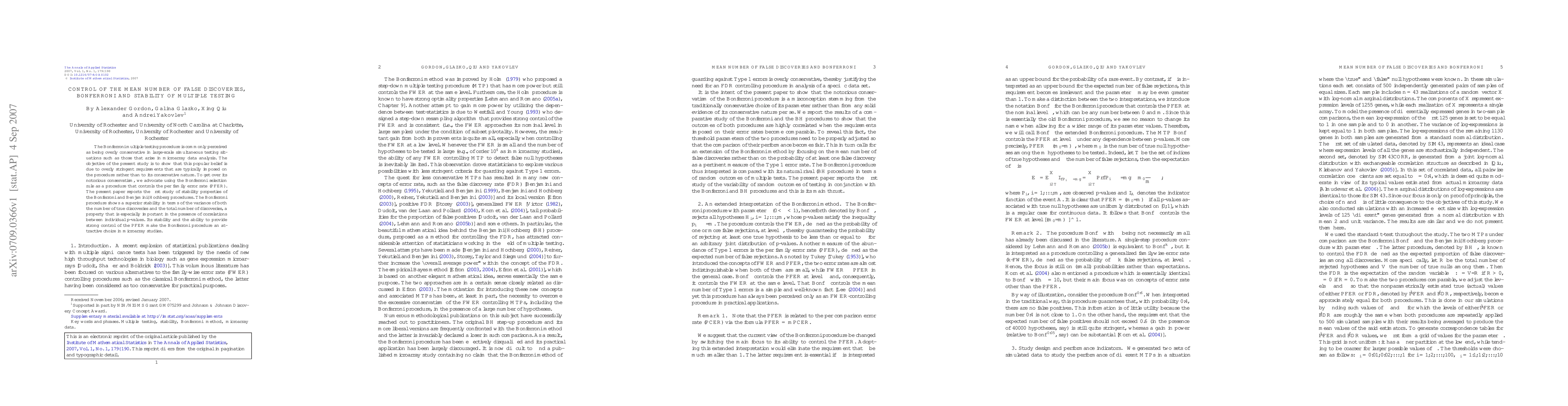 The Bonferroni multiple testing procedure is commonly perceived as being overly conservative in large-scale simultaneous testing situations such as those that arise in microarray data analysis. The objective of the present study is to show that this popular belief is due to overly stringent requirements that are typically imposed on the procedure rather than to its conservative nature. To get over its notorious conservatism, we advocate using the Bonferroni selection rule as a procedure that controls the per family error rate (PFER). The present paper reports the first study of stability properties of the Bonferroni and Benjamini--Hochberg procedures. The Bonferroni procedure shows a superior stability in terms of the variance of both the number of true discoveries and the total number of discoveries, a property that is especially important in the presence of correlations between individual $p$-values. Its stability and the ability to provide strong control of the PFER make the Bonferroni procedure an attractive choice in microarray studies.