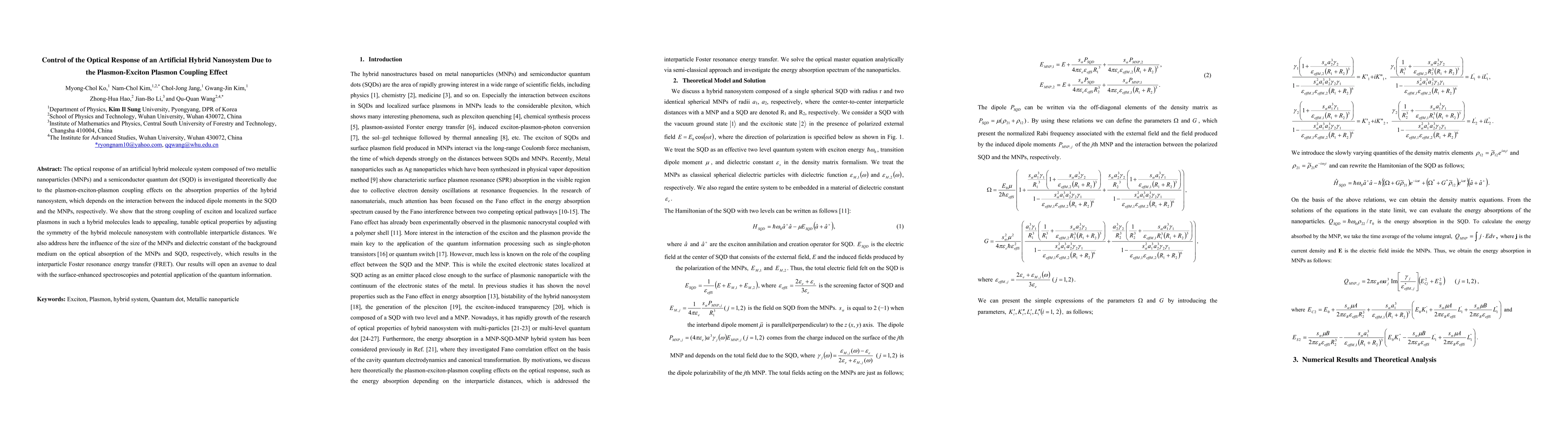 This paper investigates the tunable optical response of a hybrid nanosystem composed of metallic nanoparticles and a semiconductor quantum dot, driven by plasmon-exciton coupling. The study demonstrates that adjusting the symmetry and interparticle distances can control the optical properties, while also considering the impact of nanoparticle size and medium dielectric constant on the optical absorption.