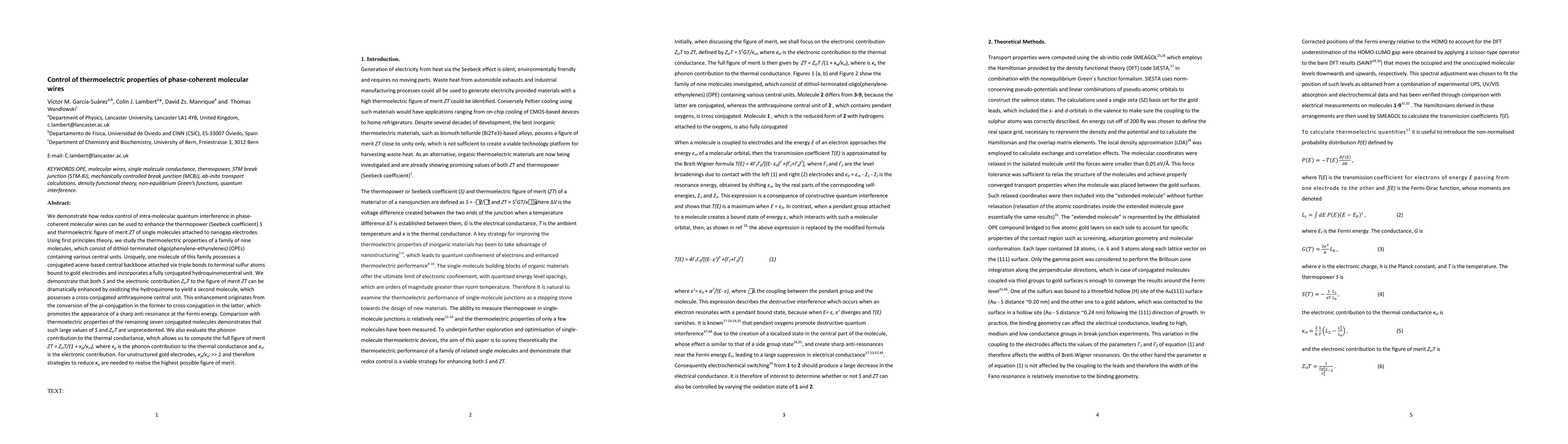 We demonstrate how redox control of intra-molecular quantum interference in phase-coherent molecular wires can be used to enhance the thermopower (Seebeck coefficient) S and thermoelectric figure of merit ZT of single molecules attached to nanogap electrodes. Using first principles theory, we study the thermoelectric properties of a family of nine molecules, which consist of dithiol-terminated oligo(phenylene-ethynylenes) (OPEs) containing various central units. Uniquely, one molecule of this family possesses a conjugated acene-based central backbone attached via triple bonds to terminal sulfur atoms bound to gold electrodes and incorporates a fully conjugated hydroquinone central unit. We demonstrate that both S and the electronic contribution ZelT to the figure of merit ZT can be dramatically enhanced by oxidizing the hydroquinone to yield a second molecule, which possesses a cross-conjugated anthraquinone central unit. This enhancement originates from the conversion of the pi-conjugation in the former to cross-conjugation in the latter, which promotes the appearance of a sharp anti-resonance at the Fermi energy. Comparison with thermoelectric properties of the remaining seven conjugated molecules demonstrates that such large values of S and ZelT are unprecedented. We also evaluate the phonon contribution to the thermal conductance, which allows us to compute the full figure of merit ZT = ZelT/(1 + \k{appa}p/\k{appa}el), where \k{appa}p is the phonon contribution to the thermal conductance and \k{appa}el is the electronic contribution. For unstructured gold electrodes, \k{appa}p/\k{appa}el >> 1 and therefore strategies to reduce \k{appa}p are needed to realise the highest possible figure of merit.