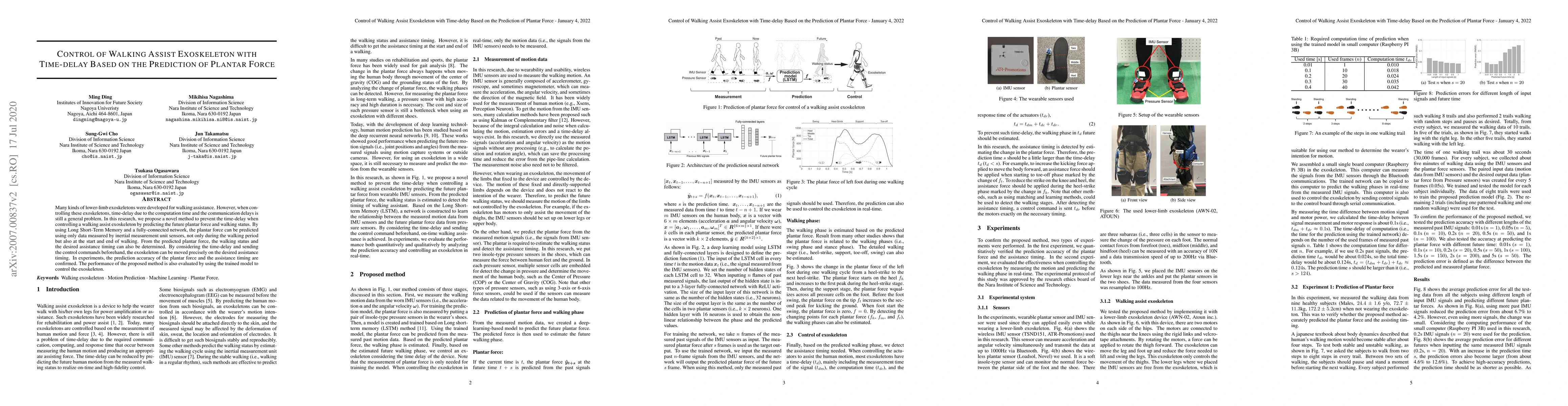 This research proposes a method to mitigate time-delay in controlling walking assist exoskeletons by predicting future plantar force using Long Short-Term Memory networks. The model predicts plantar force and assists timing based on inertial measurement unit data, allowing for precise control despite delays.