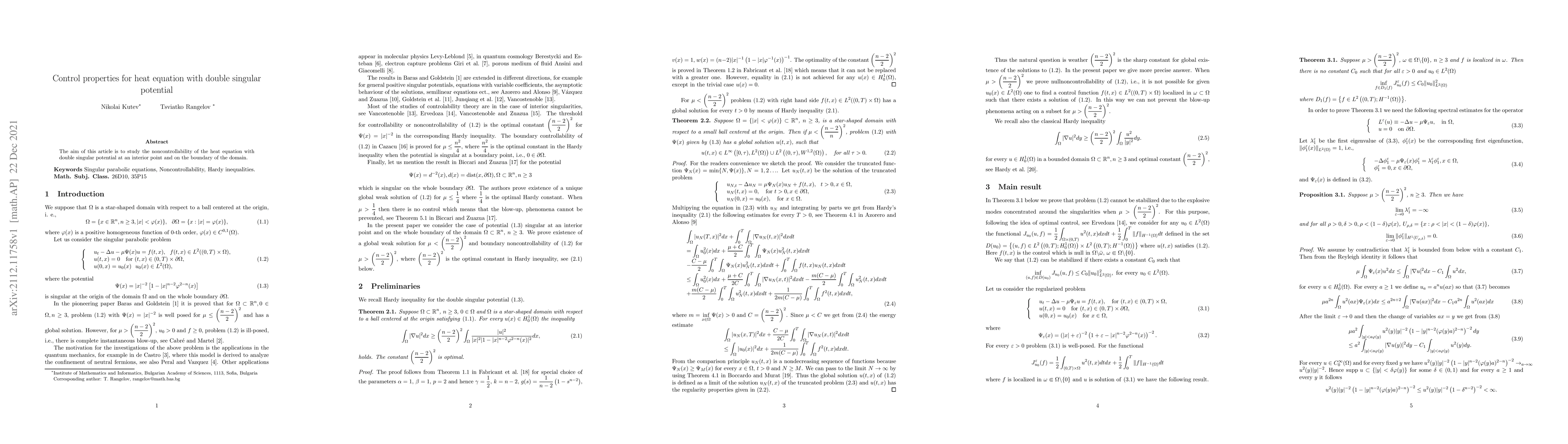 The aim of this article is to study the noncontrollability of the heat equation with double singular potential at an interior point and on the boundary of the domain.