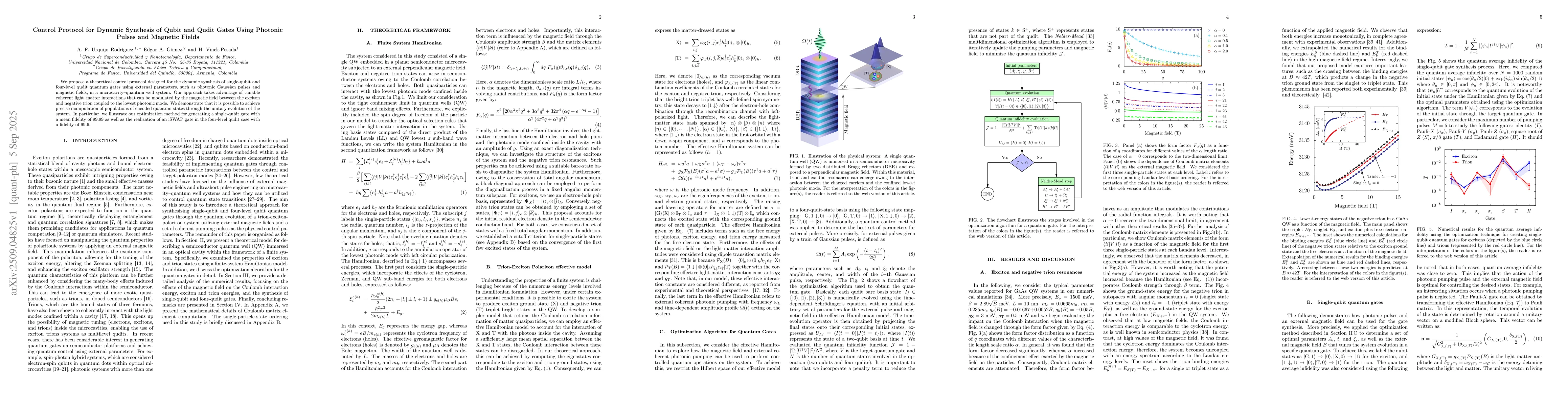 We propose a theoretical control protocol designed for the dynamic synthesis of single qubit and four-level qudit quantum gates using external parameters, such as photonic Gaussian pulses and magnetic fields, in a microcavity quantum well system. Our approach takes advantage of tunable coherent light matter interactions that can be modulated by the magnetic field between the exciton and negative trion coupled to the lowest photonic mode. We demonstrate that it is possible to achieve precise manipulation of populations of encoded quantum states through the unitary evolution of the system. In particular, we illustrate our optimization method for generating a single qubit gate with a mean fidelity of 99.99 as well as the realization of an iSWAP gate in the four level qudit case with a fidelity of 99.6.