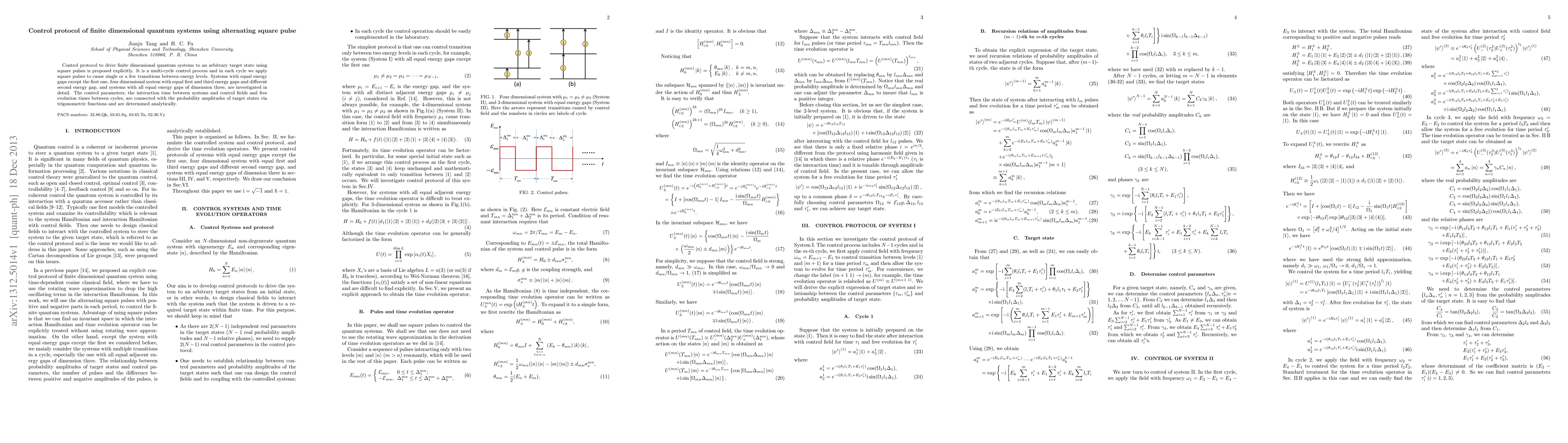 This paper proposes a control protocol for driving finite-dimensional quantum systems to target states using multi-cycle square pulses. Analytical methods determine the control parameters, linking interaction and evolution times to target state probabilities via trigonometric functions.