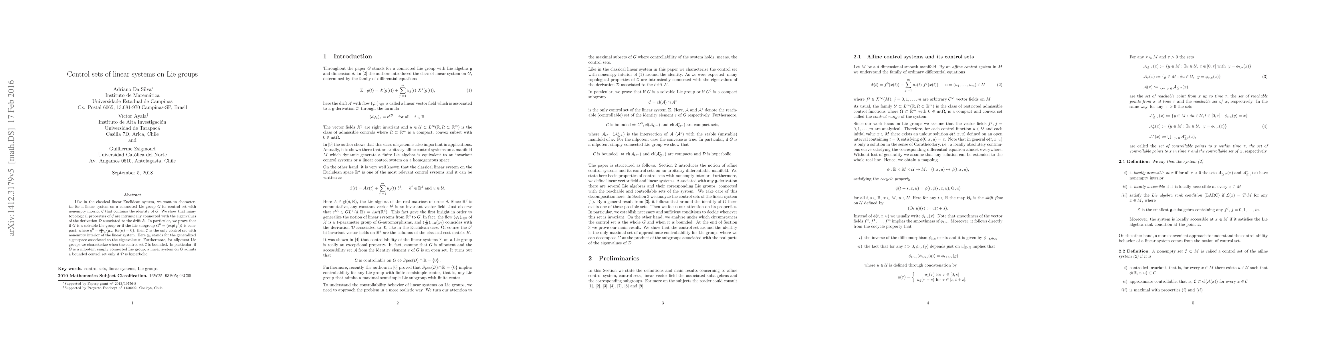 Summary: This paper investigates the properties of maximal sets of approximate controllability for linear systems defined on Lie groups, extending the concept of controllability from Euclidean spaces to more complex geometric structures.