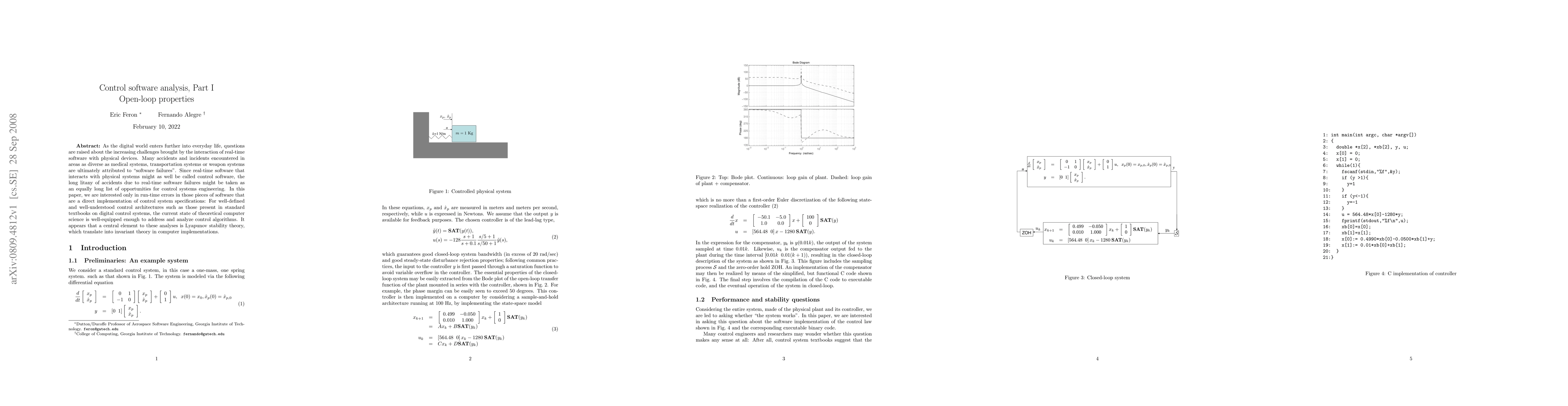 This paper investigates the open-loop properties of control software, focusing on real-time software failures that interact with physical systems. It leverages Lyapunov stability theory and invariant theory to analyze control algorithms within well-defined control architectures.