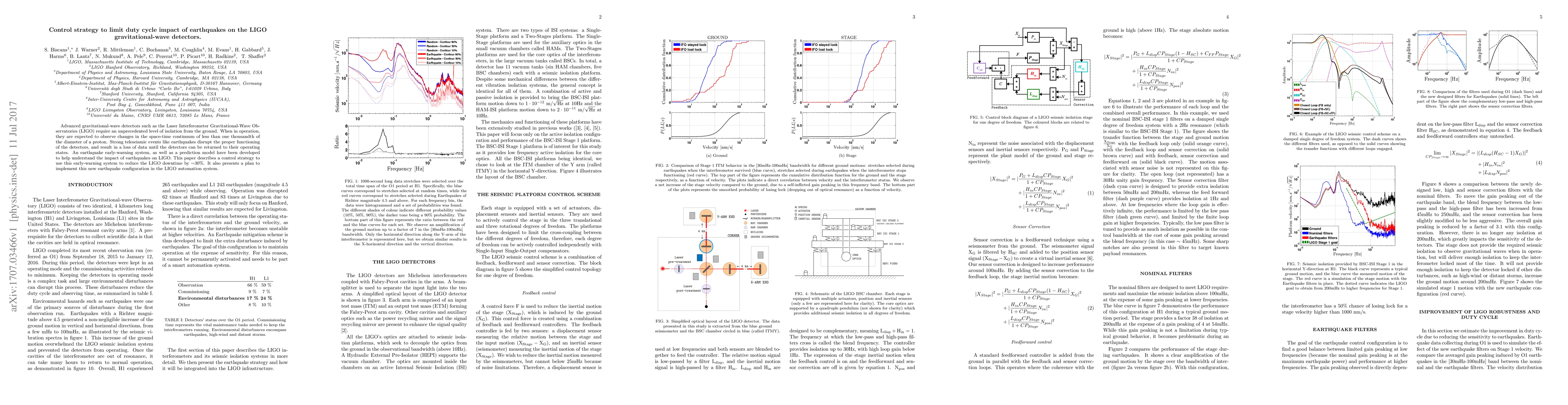 Advanced gravitational-wave detectors such as the Laser Interferometer Gravitational-Wave Observatories (LIGO) require an unprecedented level of isolation from the ground. When in operation, they are expected to observe changes in the space-time continuum of less than one thousandth of the diameter of a proton. Strong teleseismic events like earthquakes disrupt the proper functioning of the detectors, and result in a loss of data until the detectors can be returned to their operating states. An earthquake early-warning system, as well as a prediction model have been developed to help understand the impact of earthquakes on LIGO. This paper describes a control strategy to use this early-warning system to reduce the LIGO downtime by 30%. It also presents a plan to implement this new earthquake configuration in the LIGO automation system.