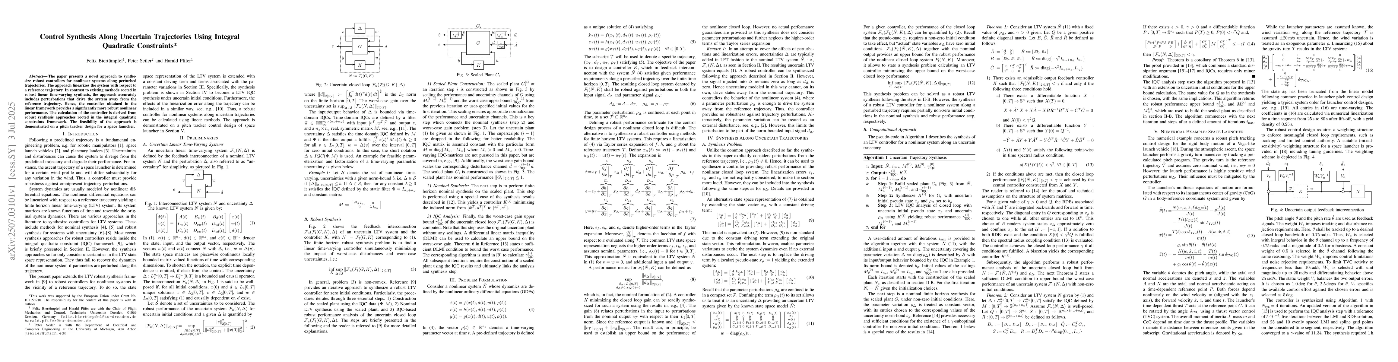 The paper presents a novel approach to synthesize robust controllers for nonlinear systems along perturbed trajectories. The approach linearizes the system with respect to a reference trajectory. In contrast to existing methods rooted in robust linear time-varying synthesis, the approach accurately includes perturbations that drive the system away from the reference trajectory. Hence, the controller obtained in the linear framework provides a significantly more robust nonlinear performance. The calculation of the controller is derived from robust synthesis approaches rooted in the integral quadratic constraints framework. The feasibility of the approach is demonstrated on a pitch tracker design for a space launcher.
