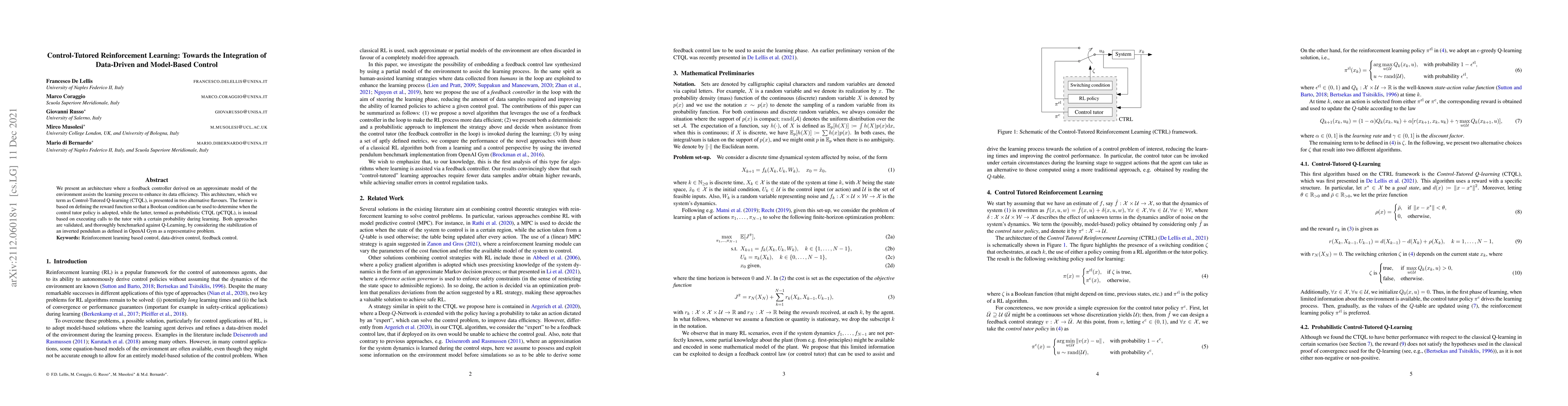 This paper introduces Control-Tutored Q-learning (CTQL), a reinforcement learning framework that uses a feedback controller based on an approximate model to improve data efficiency. It presents two variants: a Boolean condition-based approach and a probabilistic one, both validated against standard Q-Learning through the inverted pendulum stabilization task in OpenAI Gym.