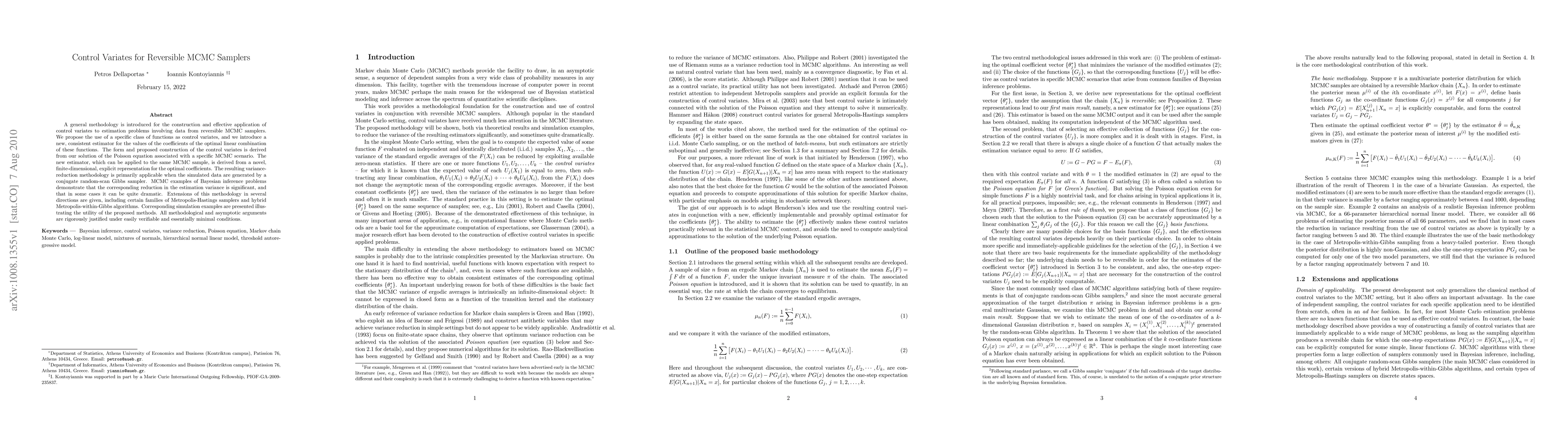 This paper introduces a methodology for using control variates to reduce variance in estimation from reversible MCMC samplers, particularly conjugate random-scan Gibbs samplers. The proposed control variates and a new consistent estimator for optimal coefficients significantly reduce estimation variance, with notable improvements demonstrated in Bayesian inference problems.