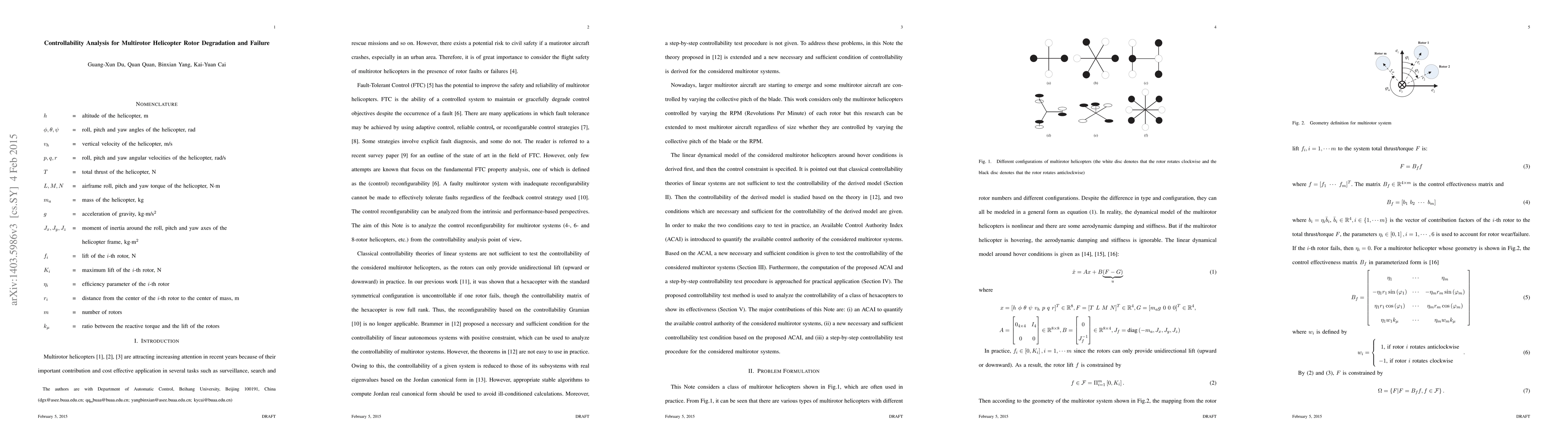 This paper considers the controllability analysis problem for a class of multirotor systems subject to rotor failure/wear. It is shown that classical controllability theories of linear systems are not sufficient to test the controllability of the considered multirotors. Owing to this, an easy-to-use measurement index is introduced to assess the available control authority. Based on it, a new necessary and sufficient condition for the controllability of multirotors is derived. Furthermore, a controllability test procedure is approached. The proposed controllability test method is applied to a class of hexacopters with different rotor configurations and different rotor efficiency parameters to show its effectiveness. The analysis results show that hexacopters with different rotor configurations have different fault-tolerant capabilities. It is therefore necessary to test the controllability of the multirotors before any fault-tolerant control strategies are employed.