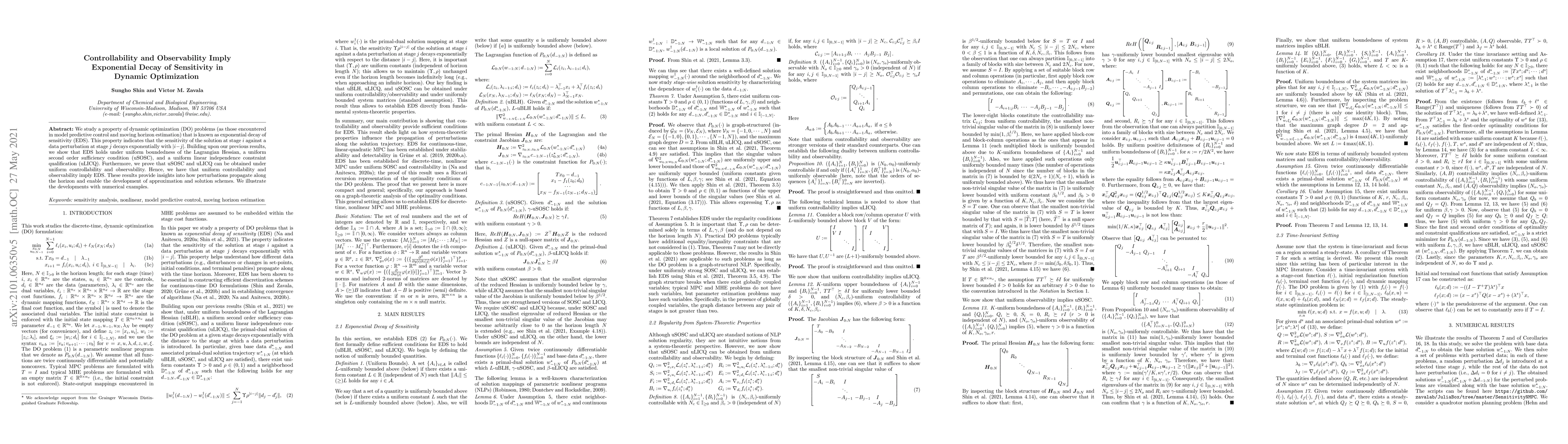 Research shows that controllability and observability imply exponential decay of sensitivity in dynamic optimization problems, enabling better approximation and solution schemes.