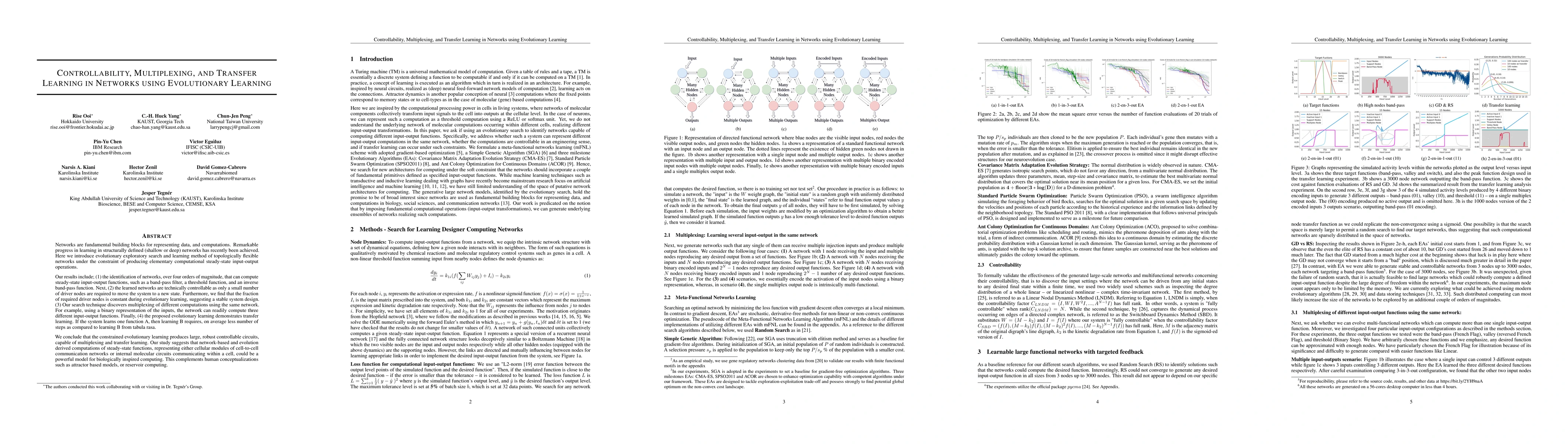Researchers developed a method for creating robust, controllable networks that can perform multiple tasks, such as filtering and thresholding, using evolutionary learning. These networks demonstrate potential in biologically inspired computing and transfer learning.