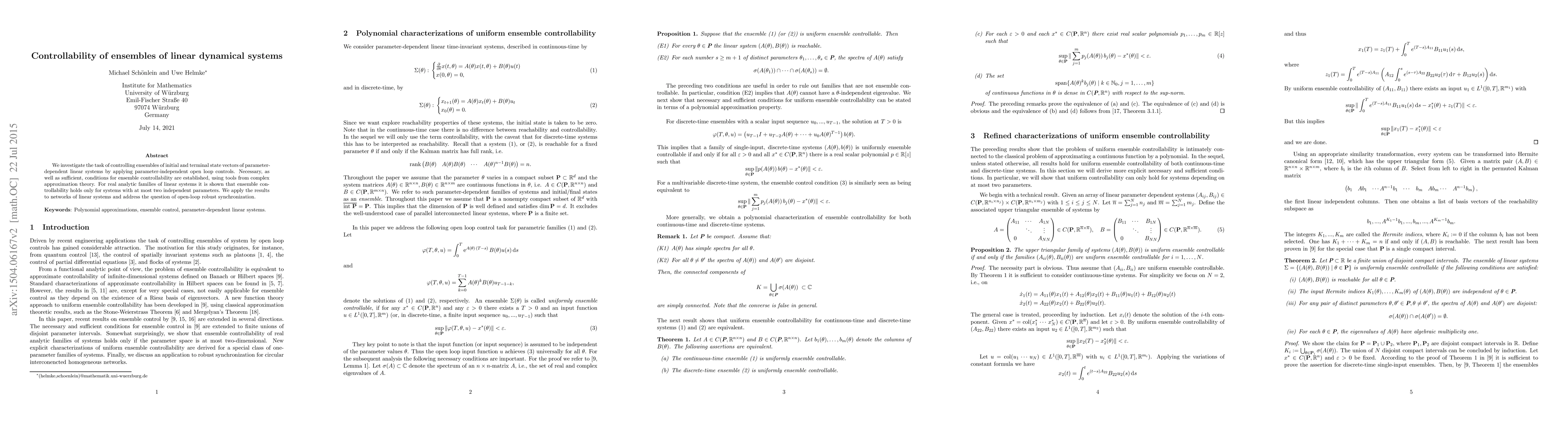 Researchers investigated how to control groups of linear systems with changing parameters using open-loop controls, finding that only systems with two independent parameters can be controlled.