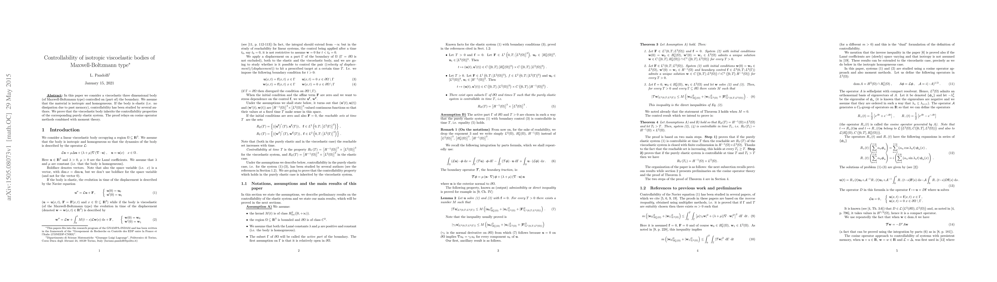 A study shows that viscoelastic bodies inherit controllability properties from their purely elastic counterparts, using cosine operator methods and moment theory to prove the result.