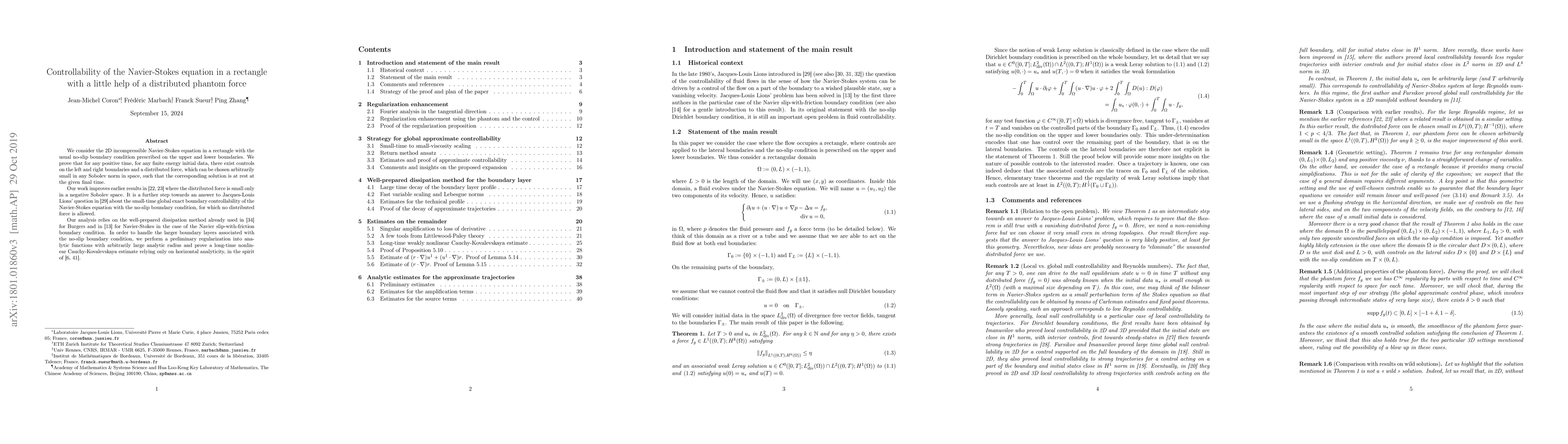 This paper proves the controllability of the 2D incompressible Navier-Stokes equation in a rectangle with no-slip boundary conditions, showing that a small distributed phantom force can drive the solution to rest at any given time. The work improves previous results by allowing the force to be small in any Sobolev norm, advancing the understanding of boundary controllability without requiring a distributed force.