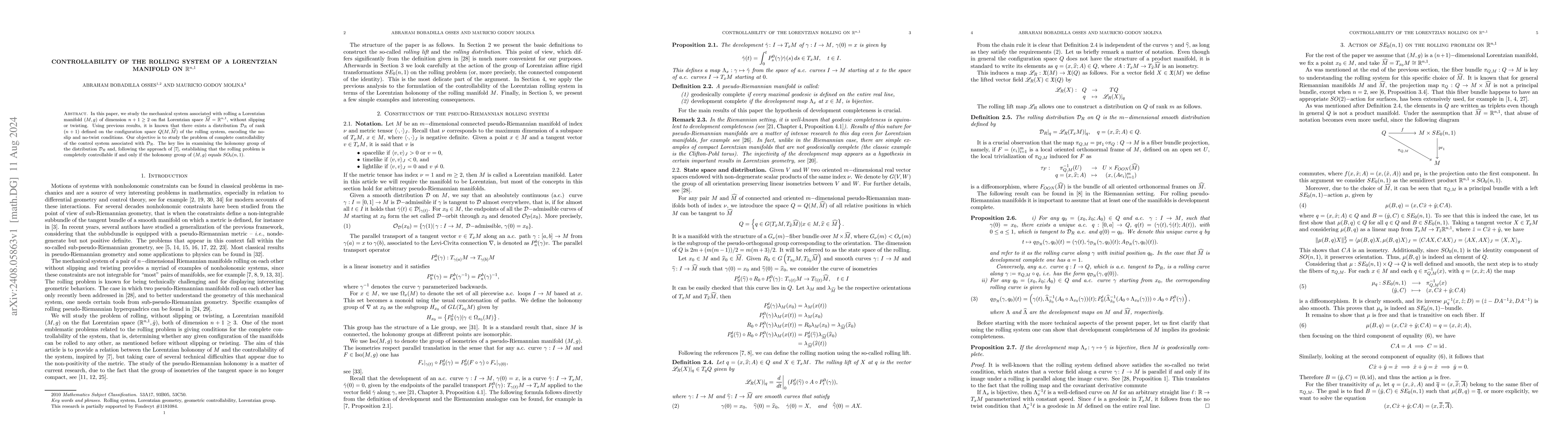 The paper establishes a connection between the controllability of a rolling system and the holonomy group of the base manifold, generalizing previous results to the Lorentzian context.