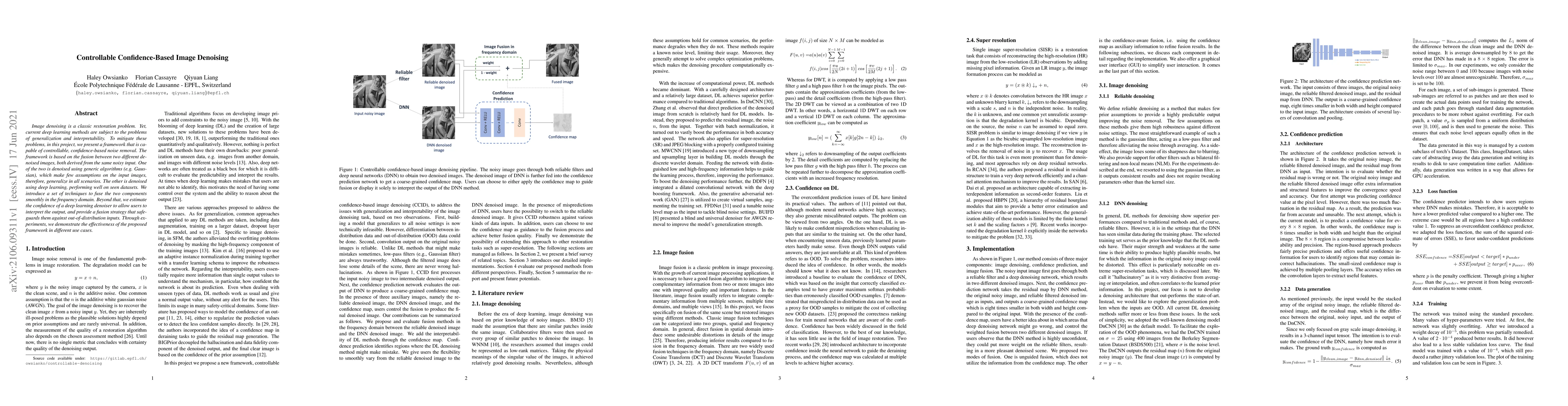 Image denoising is a classic restoration problem. Yet, current deep learning methods are subject to the problems of generalization and interpretability. To mitigate these problems, in this project, we present a framework that is capable of controllable, confidence-based noise removal. The framework is based on the fusion between two different denoised images, both derived from the same noisy input. One of the two is denoised using generic algorithms (e.g. Gaussian), which make few assumptions on the input images, therefore, generalize in all scenarios. The other is denoised using deep learning, performing well on seen datasets. We introduce a set of techniques to fuse the two components smoothly in the frequency domain. Beyond that, we estimate the confidence of a deep learning denoiser to allow users to interpret the output, and provide a fusion strategy that safeguards them against out-of-distribution inputs. Through experiments, we demonstrate the effectiveness of the proposed framework in different use cases.
