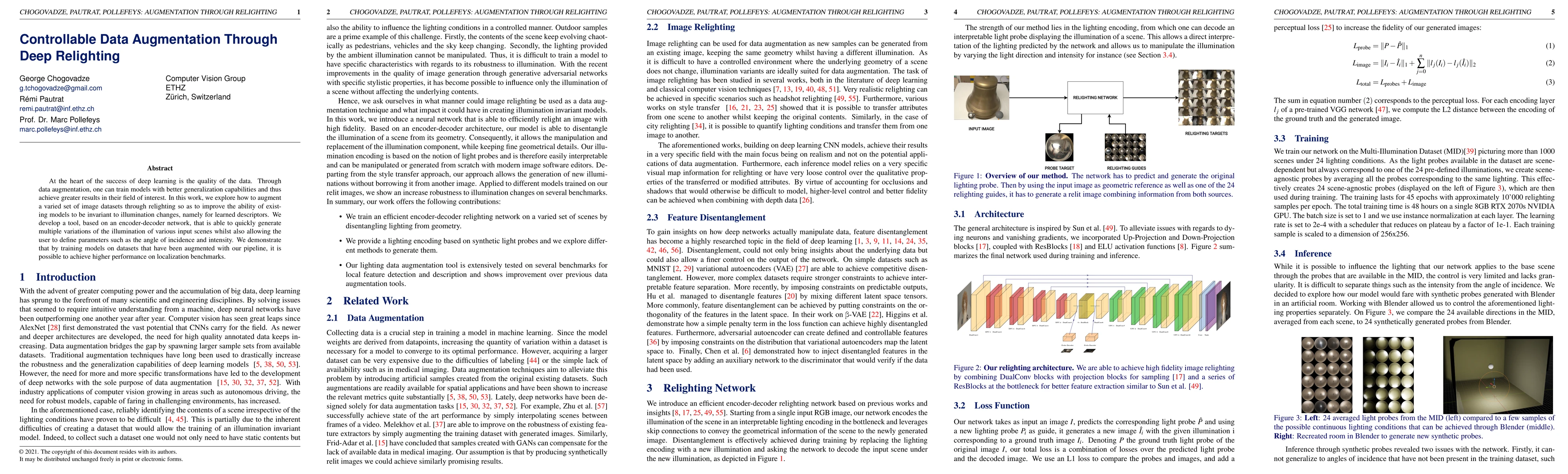 At the heart of the success of deep learning is the quality of the data. Through data augmentation, one can train models with better generalization capabilities and thus achieve greater results in their field of interest. In this work, we explore how to augment a varied set of image datasets through relighting so as to improve the ability of existing models to be invariant to illumination changes, namely for learned descriptors. We develop a tool, based on an encoder-decoder network, that is able to quickly generate multiple variations of the illumination of various input scenes whilst also allowing the user to define parameters such as the angle of incidence and intensity. We demonstrate that by training models on datasets that have been augmented with our pipeline, it is possible to achieve higher performance on localization benchmarks.
