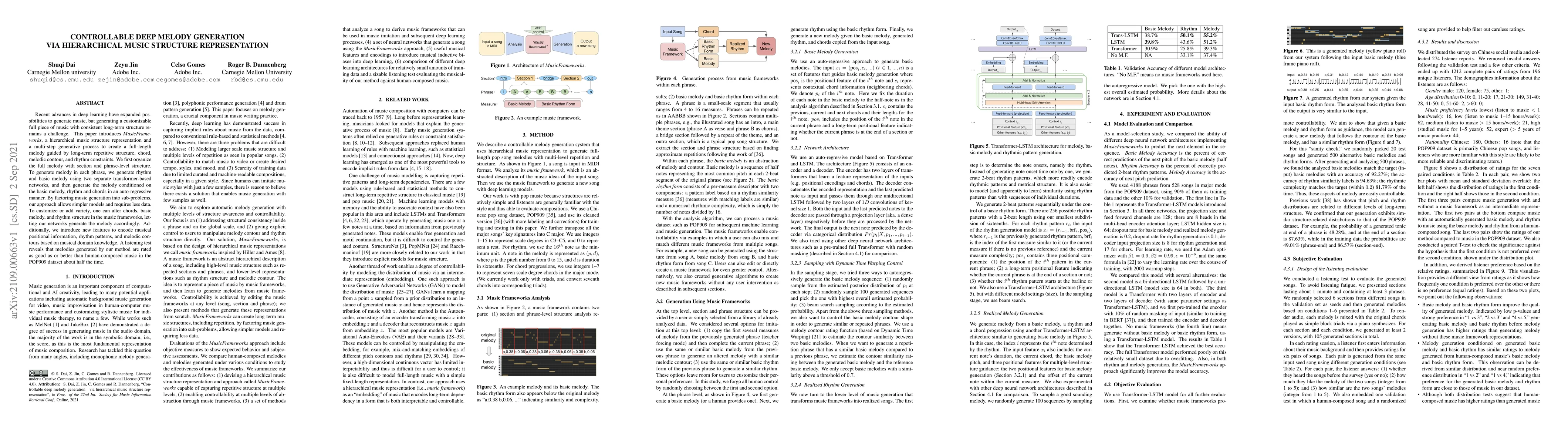 This work differs from existing research in its use of hierarchical structure to model musical complexity, allowing for the creation of more nuanced and diverse compositions.