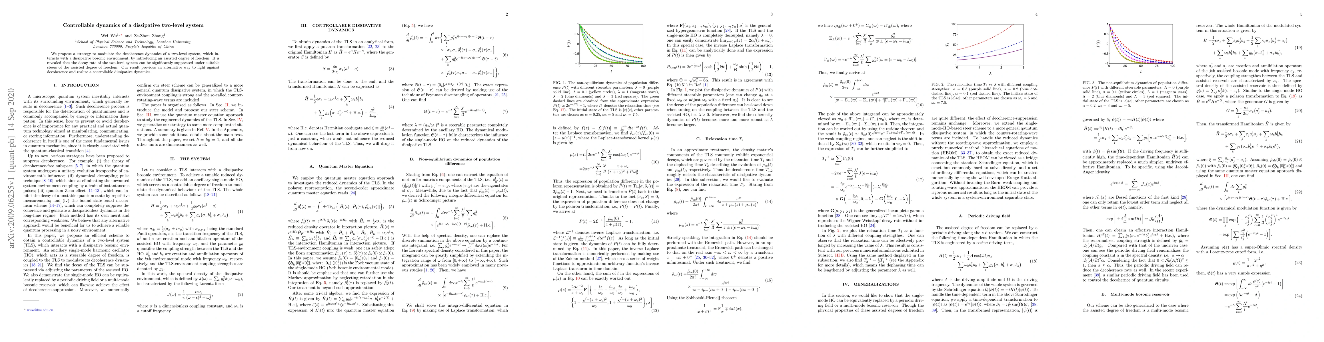 This paper proposes a method to modulate the decoherence dynamics of a two-level system interacting with a dissipative environment by introducing an assisted degree of freedom, demonstrating significant suppression of decay rates under specific controls, offering a novel approach to manage decoherence.