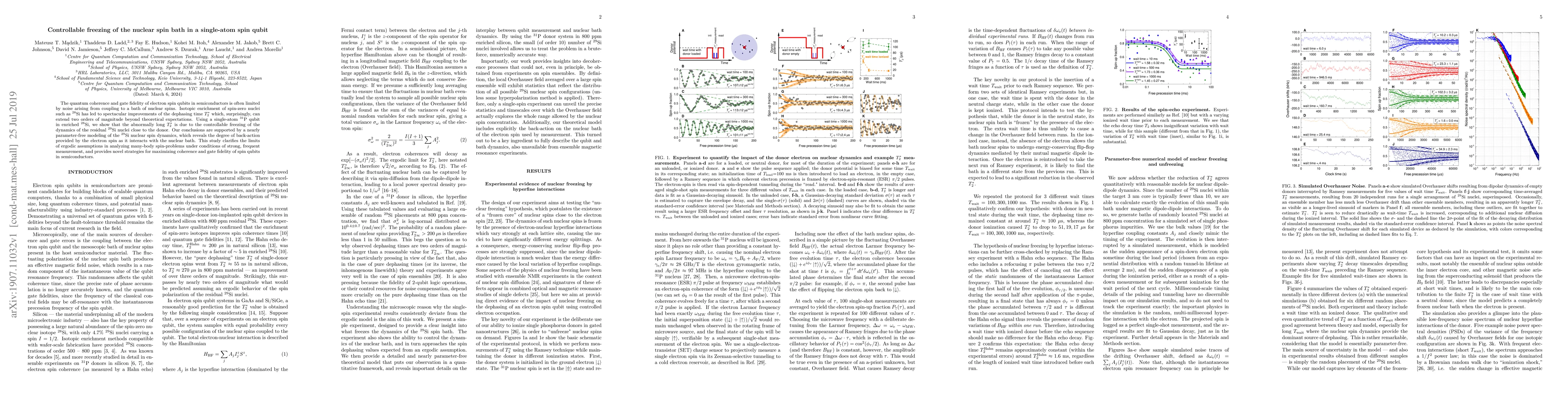 This paper demonstrates that the nuclear spin bath in a single-atom spin qubit can be controlled to freeze its dynamics, significantly enhancing coherence and gate fidelity. The study reveals that isotopic enrichment and the interaction between electron and nuclear spins can extend dephasing times beyond theoretical predictions, offering new strategies for improving qubit performance in semiconductors.