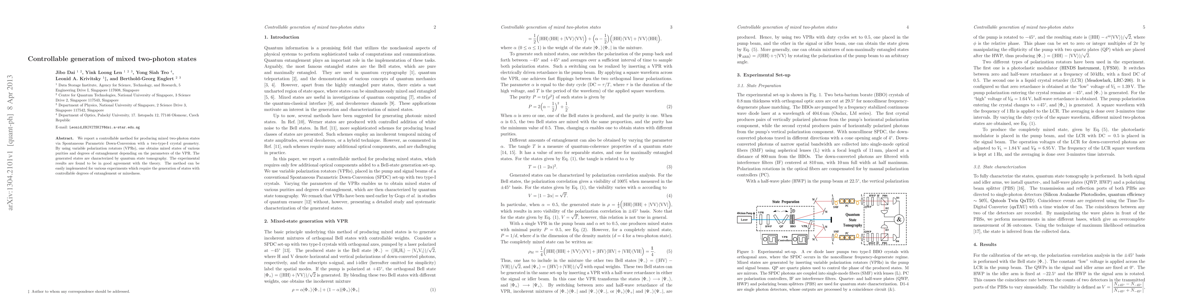 This paper presents a method for generating mixed two-photon states through Spontaneous Parametric Down-Conversion using a two-type-I crystal geometry, with control over purity and entanglement via variable polarization rotators. Quantum state tomography confirms the method's effectiveness and agreement with theoretical predictions.
