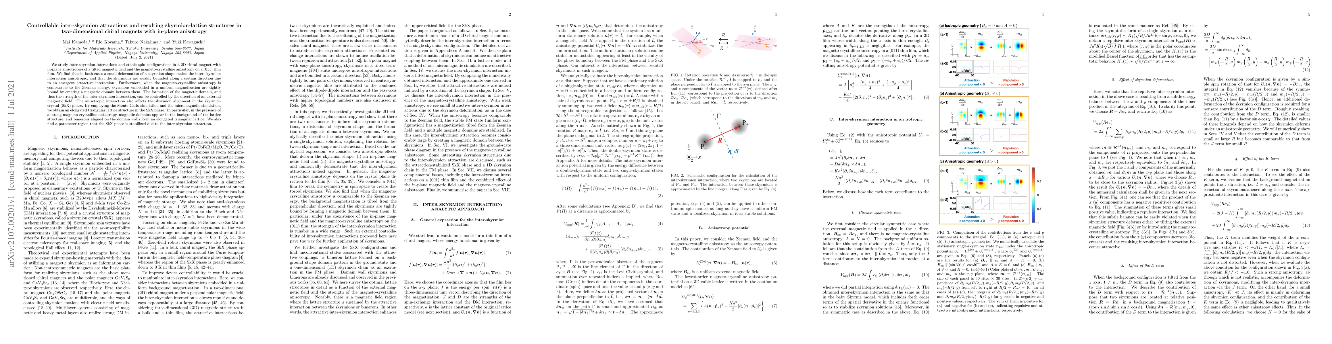 This paper investigates the controllable inter-skyrmion attractions and the resulting skyrmion-lattice structures in two-dimensional chiral magnets with in-plane anisotropy. The study reveals that anisotropic interactions can be manipulated by the direction of an external magnetic field, leading to the formation of an elongated triangular skyrmion crystal lattice.