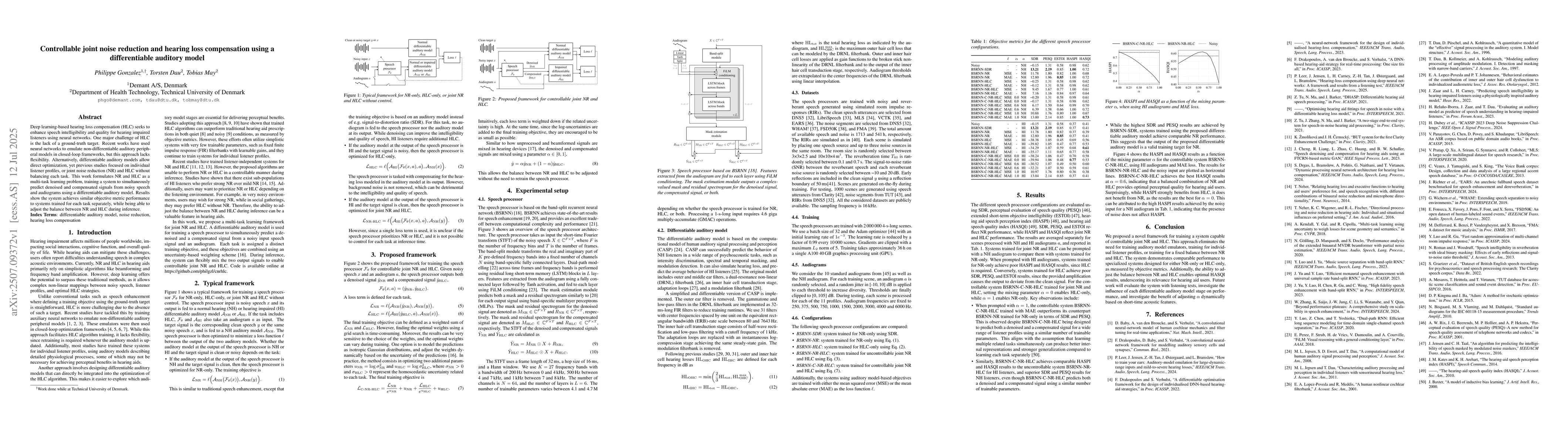 Deep learning-based hearing loss compensation (HLC) seeks to enhance speech intelligibility and quality for hearing impaired listeners using neural networks. One major challenge of HLC is the lack of a ground-truth target. Recent works have used neural networks to emulate non-differentiable auditory peripheral models in closed-loop frameworks, but this approach lacks flexibility. Alternatively, differentiable auditory models allow direct optimization, yet previous studies focused on individual listener profiles, or joint noise reduction (NR) and HLC without balancing each task. This work formulates NR and HLC as a multi-task learning problem, training a system to simultaneously predict denoised and compensated signals from noisy speech and audiograms using a differentiable auditory model. Results show the system achieves similar objective metric performance to systems trained for each task separately, while being able to adjust the balance between NR and HLC during inference.