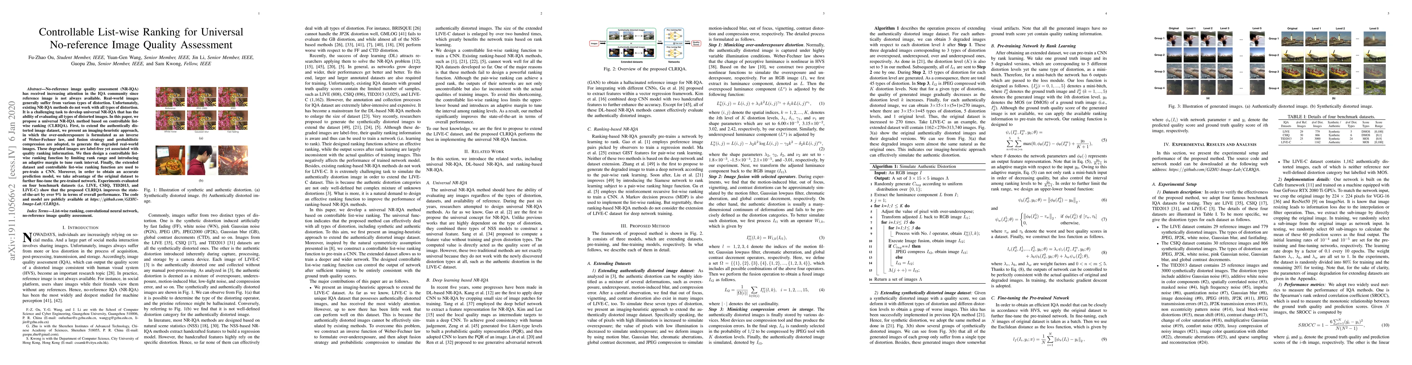 This paper proposes a universal no-reference image quality assessment (NR-IQA) method called Controllable List-wise Ranking for Universal NR-IQA (CLRIQA). It introduces an imaging-heuristic approach to generate a dataset of authentically distorted images and employs a CNN pre-trained with this dataset, fine-tuned on original data, achieving state-of-the-art performance improvements by over 9% on four benchmark datasets.