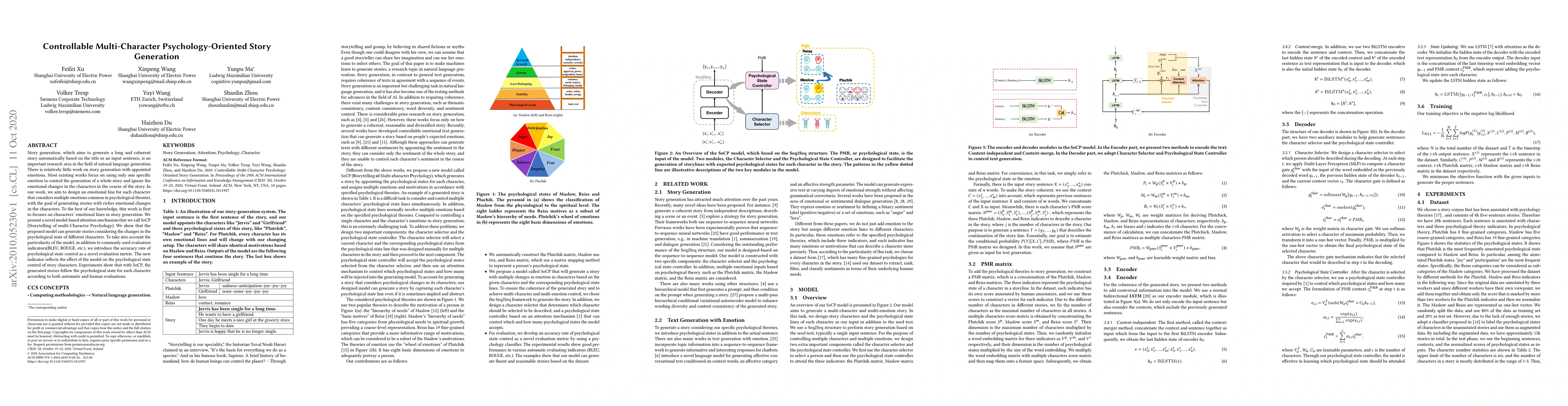 This paper introduces a novel model called SoCP for generating multi-character stories that consider the psychological state and emotional changes of each character. The model uses a model-based attention mechanism to control the emotional lines of characters, resulting in stories with richer emotional dynamics, as evaluated by both automatic metrics and human assessments.