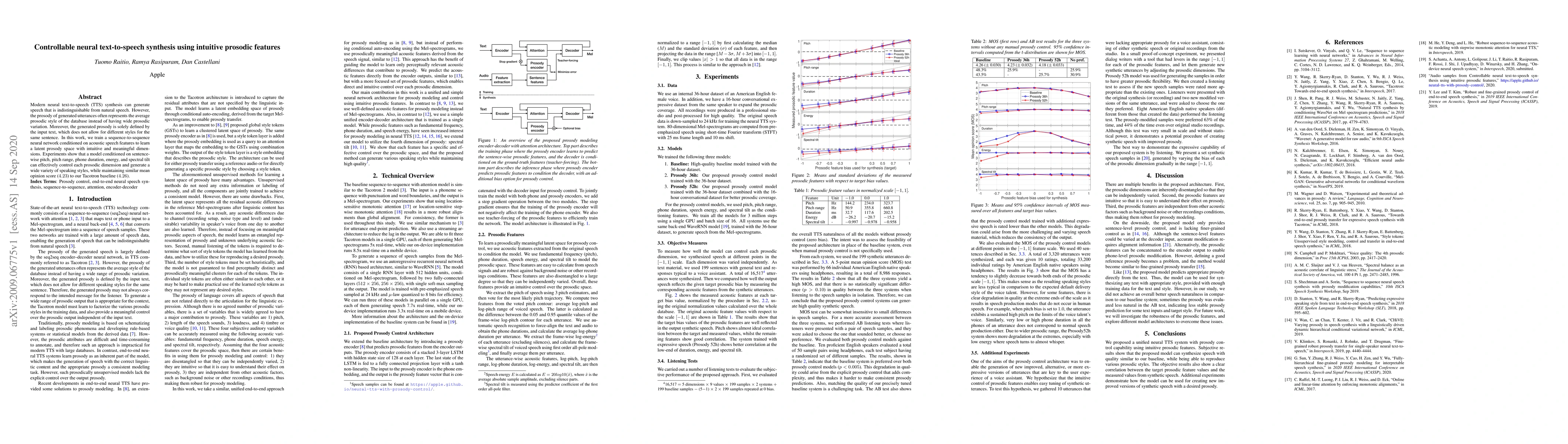 This paper proposes a neural text-to-speech model that learns a latent prosody space conditioned on intuitive prosodic features, enabling controllable variation in speech styles. The model achieves diverse prosodic variations while maintaining high naturalness, as evidenced by a mean opinion score comparable to a baseline Tacotron model.