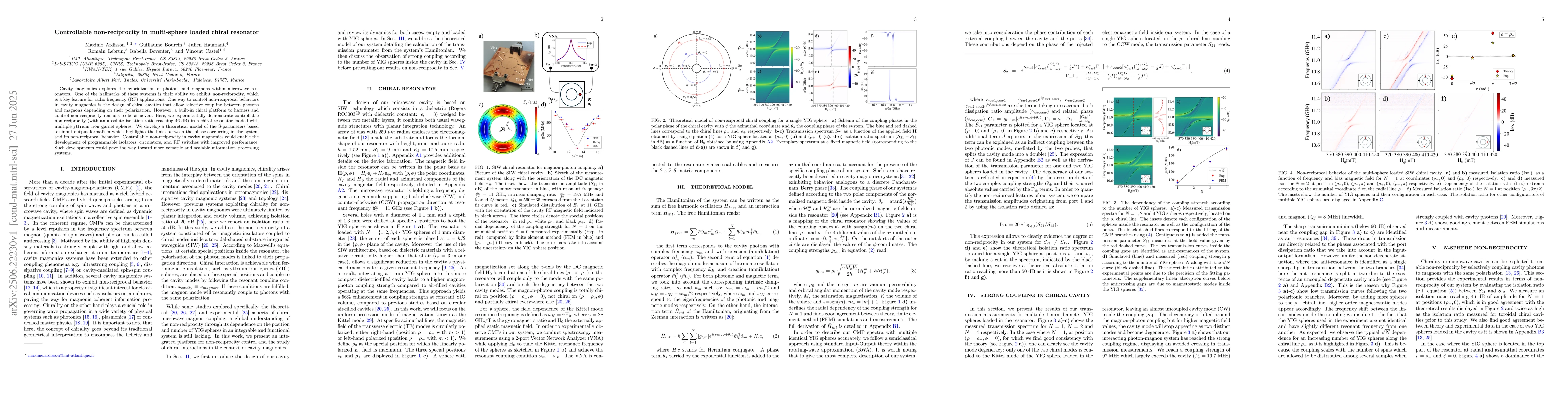 Cavity magnonics explores the hybridization of photons and magnons within microwave resonators. One of the hallmarks of these systems is their ability to exhibit non-reciprocity, which is a key feature for radio frequency (RF) applications. One way to control non-reciprocal behaviors in cavity magnonics is the design of chiral cavities that allow selective coupling between photons and magnons depending on their polarization. However, a built-in chiral platform to harness and control non-reciprocity remains to be achieved. Here, we experimentally demonstrate controllable non-reciprocity (with an absolute isolation ratio reaching 46 dB) in a chiral resonator loaded with multiple yttrium iron garnet spheres. We develop a theoretical model of the S-parameters based on input-output formalism which highlights the links between the phases occurring in the system and its non-reciprocal behavior. Controllable non-reciprocity in cavity magnonics could enable the development of programmable isolators, circulators, and RF switches with improved performance. Such developments could pave the way toward more versatile and scalable information processing systems.