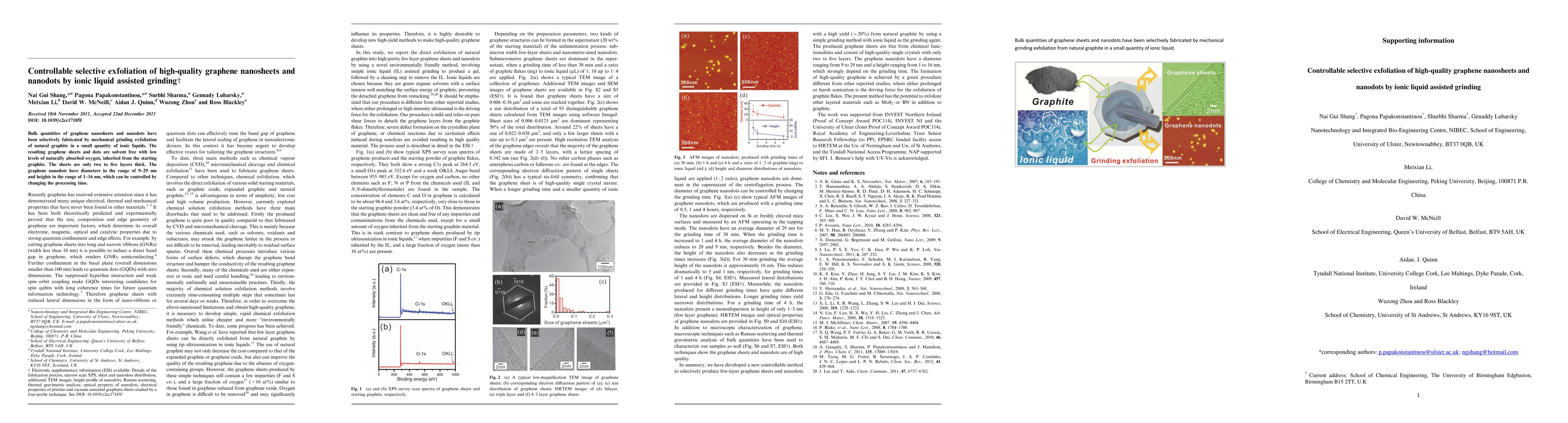 This paper presents a method for producing high-quality graphene nanosheets and nanodots through ionic liquid-assisted grinding of natural graphite, yielding solvent-free products with minimal oxygen contamination. The thickness of the nanosheets and the size of the nanodots can be controlled by adjusting the grinding duration.