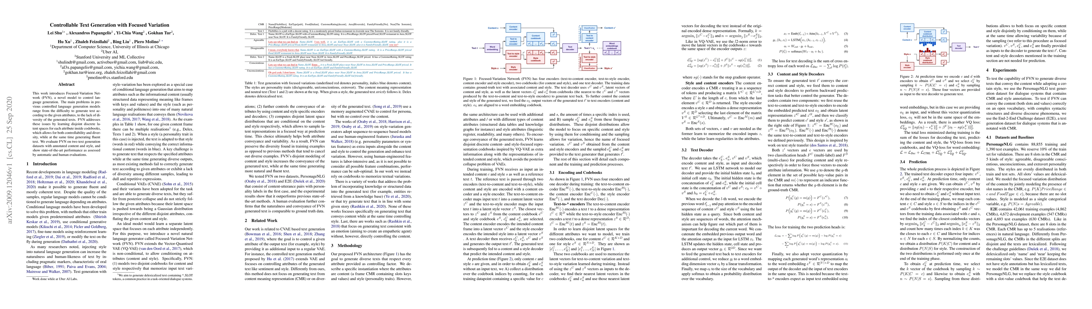 The Focused-Variation Network model controls language generation while achieving both controllability and diversity, generating fluent text on two state-of-the-art performance datasets.