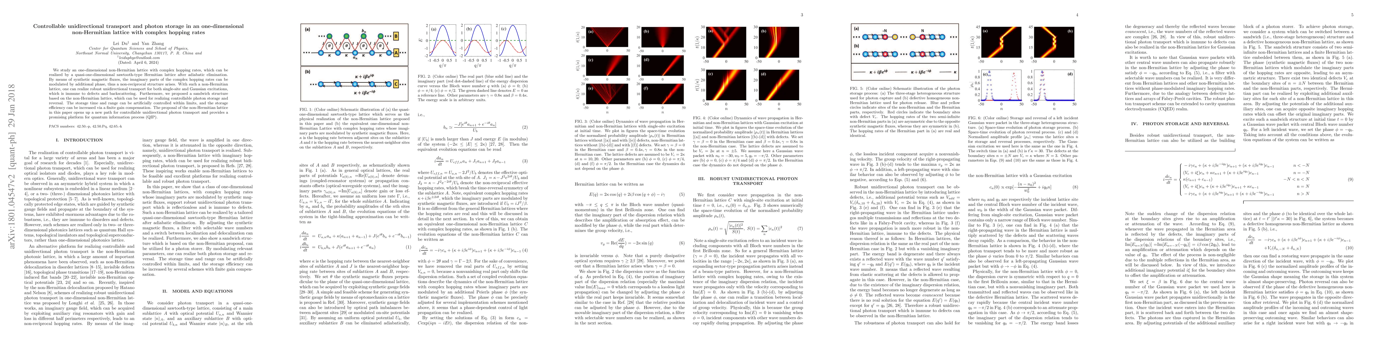This paper proposes a non-Hermitian lattice with complex hopping rates for robust unidirectional photon transport, immune to defects and backscattering. It also introduces a sandwich structure for controllable photon storage and reversal, with tunable storage time and efficiency, offering a new platform for optical control.