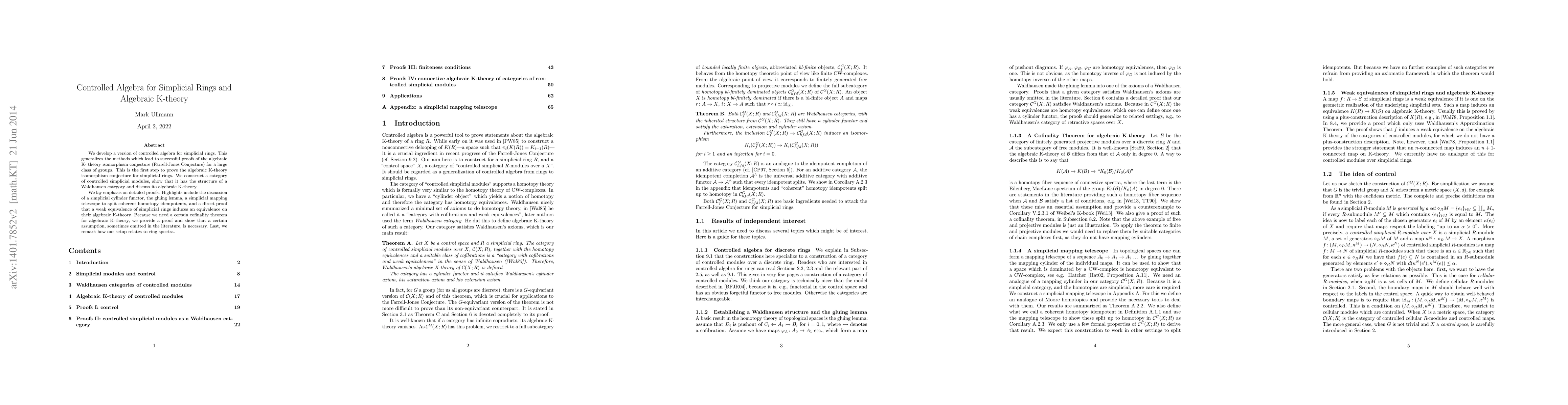 This paper develops controlled algebra for simplicial rings to generalize methods used in proving the algebraic K-theory isomorphism conjecture for groups, focusing on constructing a category of controlled simplicial modules with a Waldhausen structure. It highlights detailed proofs and connections to ring spectra.