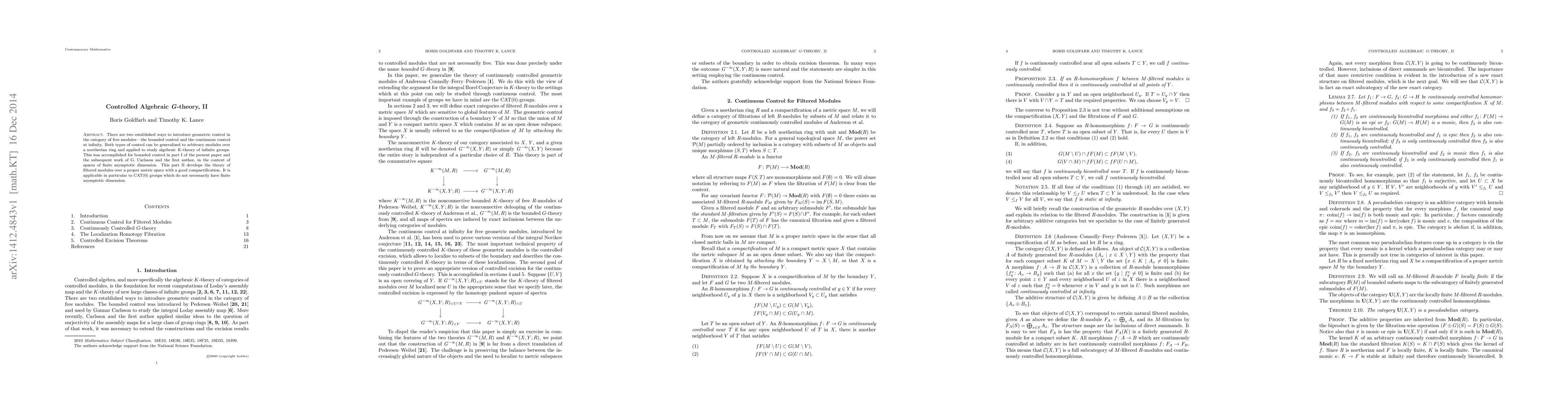 This research extends geometric control concepts to arbitrary modules over noetherian rings, applying them to algebraic K-theory of infinite groups. It specifically develops filtered modules theory over proper metric spaces with good compactification, beneficial for CAT(0) groups lacking finite asymptotic dimension, building on part I and subsequent works.