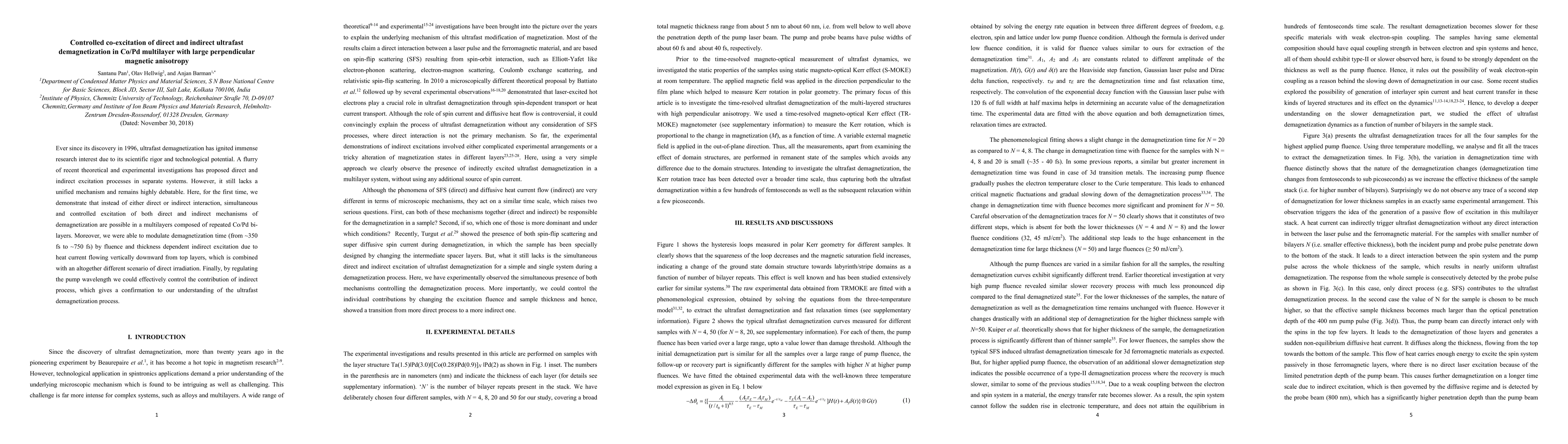 Researchers demonstrate controlled co-excitation of direct and indirect ultrafast demagnetization in a Co/Pd multilayer, allowing for modulation of demagnetization time through varying fluence and thickness.