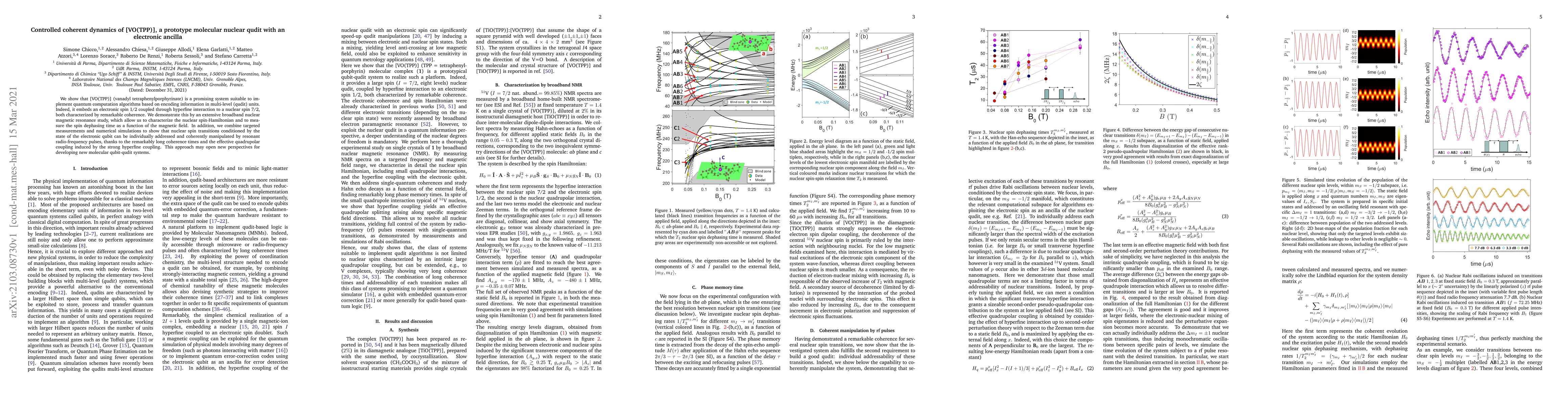 A molecular compound called [VO(TPP)] exhibits remarkable coherence in its electronic and nuclear spins, enabling controlled coherent dynamics for potential quantum computation applications. Its unique properties allow for individual addressability and manipulation of nuclear spin transitions conditioned by the state of the electronic qubit.