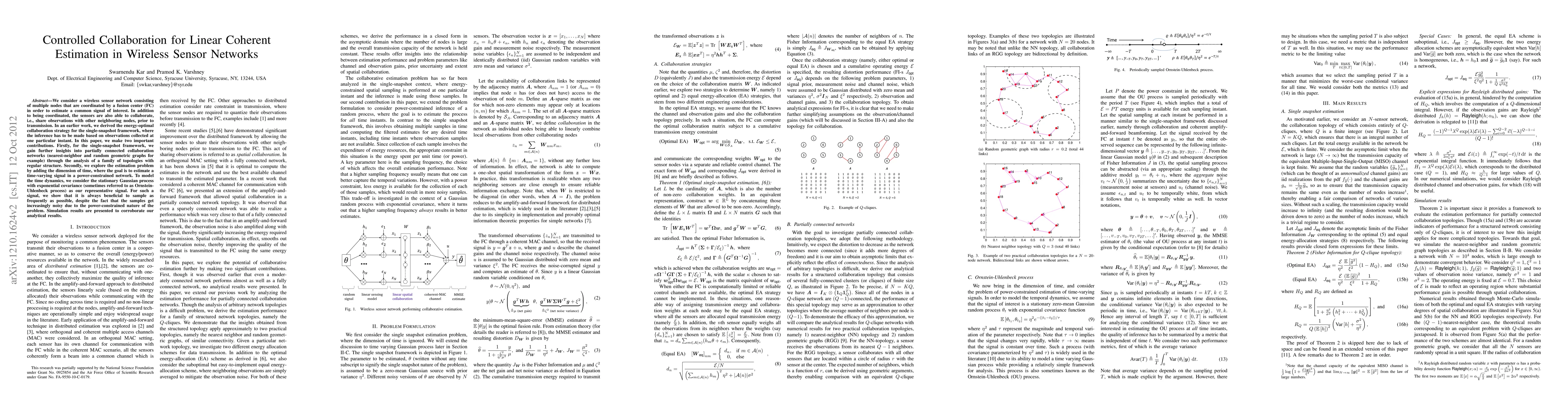 We consider a wireless sensor network consisting of multiple nodes that are coordinated by a fusion center (FC) in order to estimate a common signal of interest. In addition to being coordinated, the sensors are also able to collaborate, i.e., share observations with other neighboring nodes, prior to transmission. In an earlier work, we derived the energy-optimal collaboration strategy for the single-snapshot framework, where the inference has to be made based on observations collected at one particular instant. In this paper, we make two important contributions. Firstly, for the single-snapshot framework, we gain further insights into partially connected collaboration networks (nearest-neighbor and random geometric graphs for example) through the analysis of a family of topologies with regular structure. Secondly, we explore the estimation problem by adding the dimension of time, where the goal is to estimate a time-varying signal in a power-constrained network. To model the time dynamics, we consider the stationary Gaussian process with exponential covariance (sometimes referred to as Ornstein-Uhlenbeck process) as our representative signal. For such a signal, we show that it is always beneficial to sample as frequently as possible, despite the fact that the samples get increasingly noisy due to the power-constrained nature of the problem. Simulation results are presented to corroborate our analytical results.
