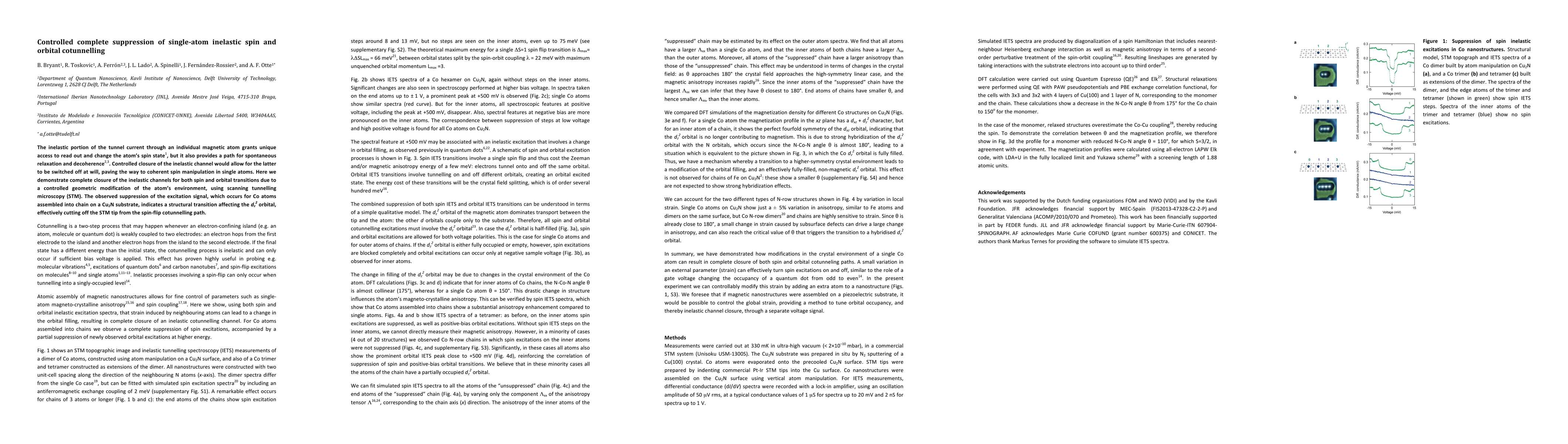 The inelastic portion of the tunnel current through an individual magnetic atom grants unique access to read out and change the atom's spin state, but it also provides a path for spontaneous relaxation and decoherence. Controlled closure of the inelastic channel would allow for the latter to be switched off at will, paving the way to coherent spin manipulation in single atoms. Here we demonstrate complete closure of the inelastic channels for both spin and orbital transitions due to a controlled geometric modification of the atom's environment, using scanning tunnelling microscopy (STM). The observed suppression of the excitation signal, which occurs for Co atoms assembled into chain on a Cu$_2$N substrate, indicates a structural transition affecting the d$_z$$^2$ orbital, effectively cutting off the STM tip from the spin-flip cotunnelling path.