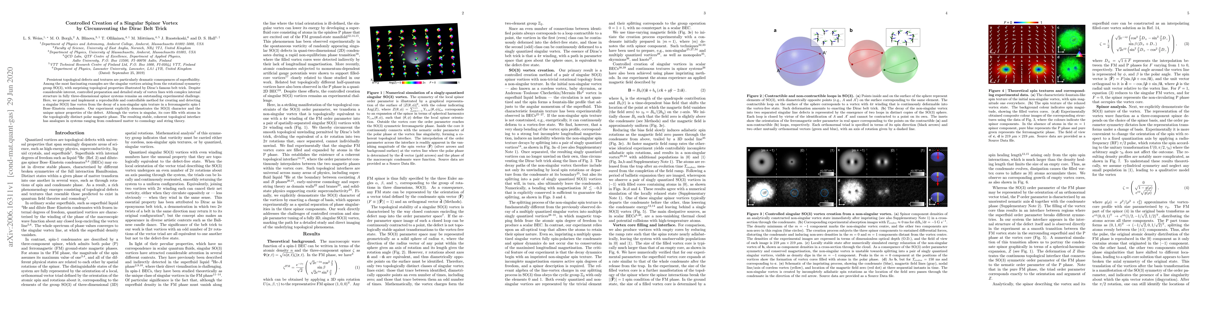 This paper proposes a method for creating a singular spinor vortex in a ferromagnetic spin-1 Bose-Einstein condensate, demonstrating its SO(3) character and unique topological properties. The experiment reveals a stable, coherent topological interface with implications across condensed matter, cosmology, and string theory.