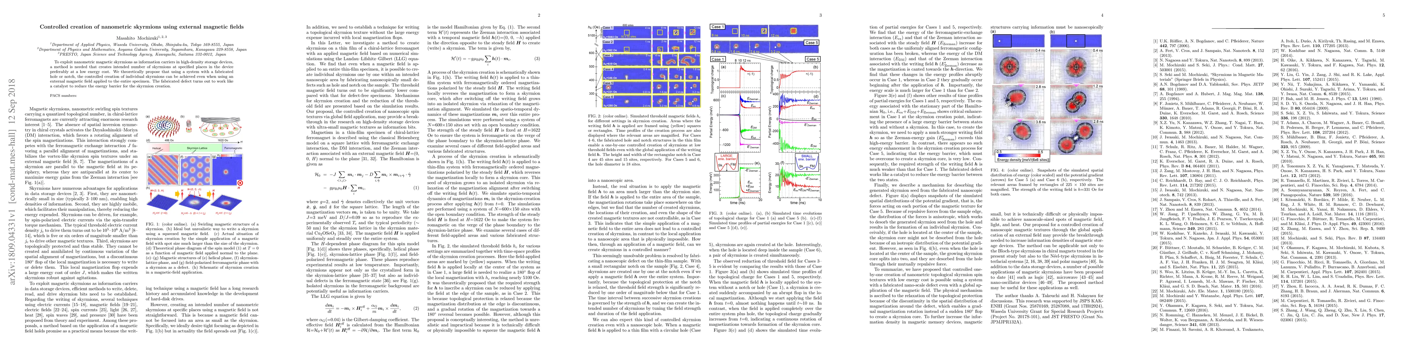 Researchers propose a method to control the creation of nanometric skyrmions using external magnetic fields and a fabricated hole or notch in a device, reducing energy costs.